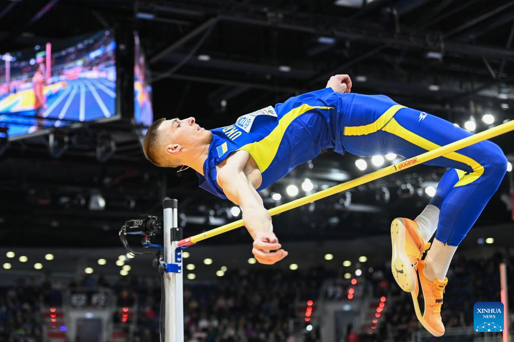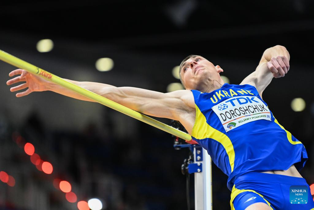 Oleh Doroschchuk of Ukraine competes during the men's high jump final at the 2026 World Athletics Indoor Championships in Torun, Poland, March 21, 2026. (Xinhua/Zhang Haofu)