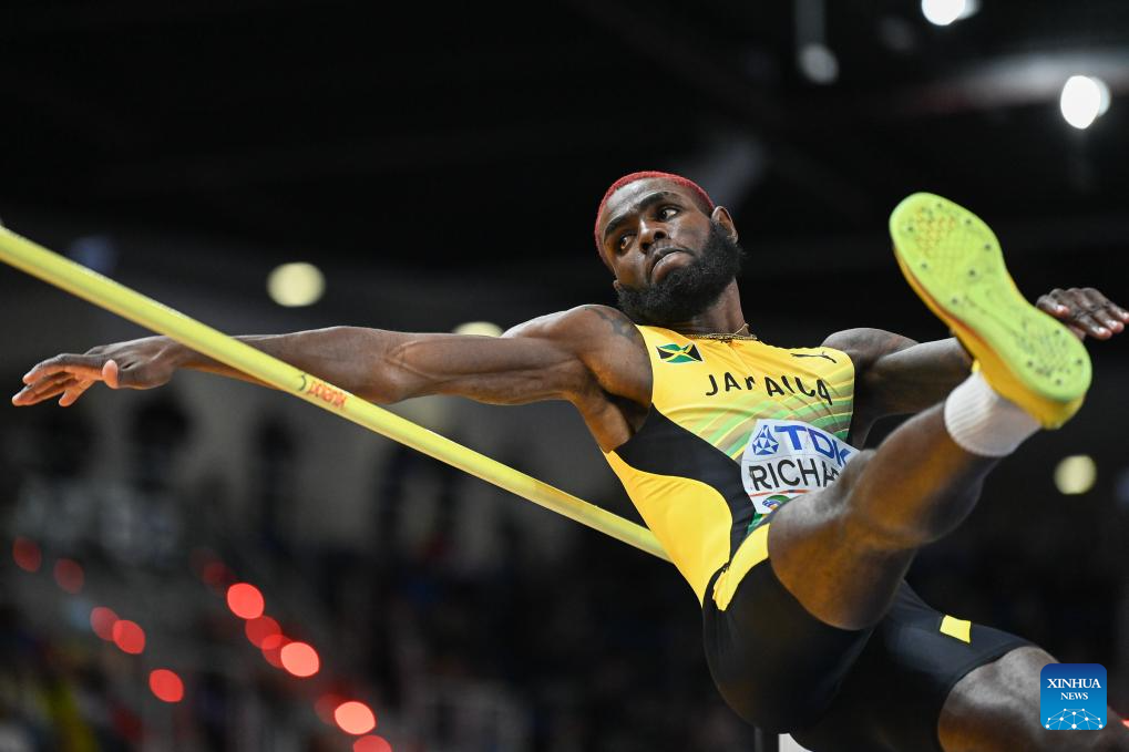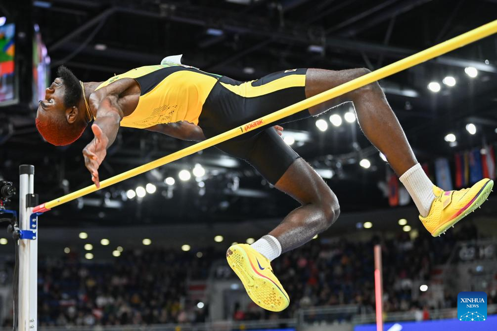 Raymond Richards of Jamaica competes during the men's high jump final at the 2026 World Athletics Indoor Championships in Torun, Poland, March 21, 2026. (Xinhua/Zhang Haofu)