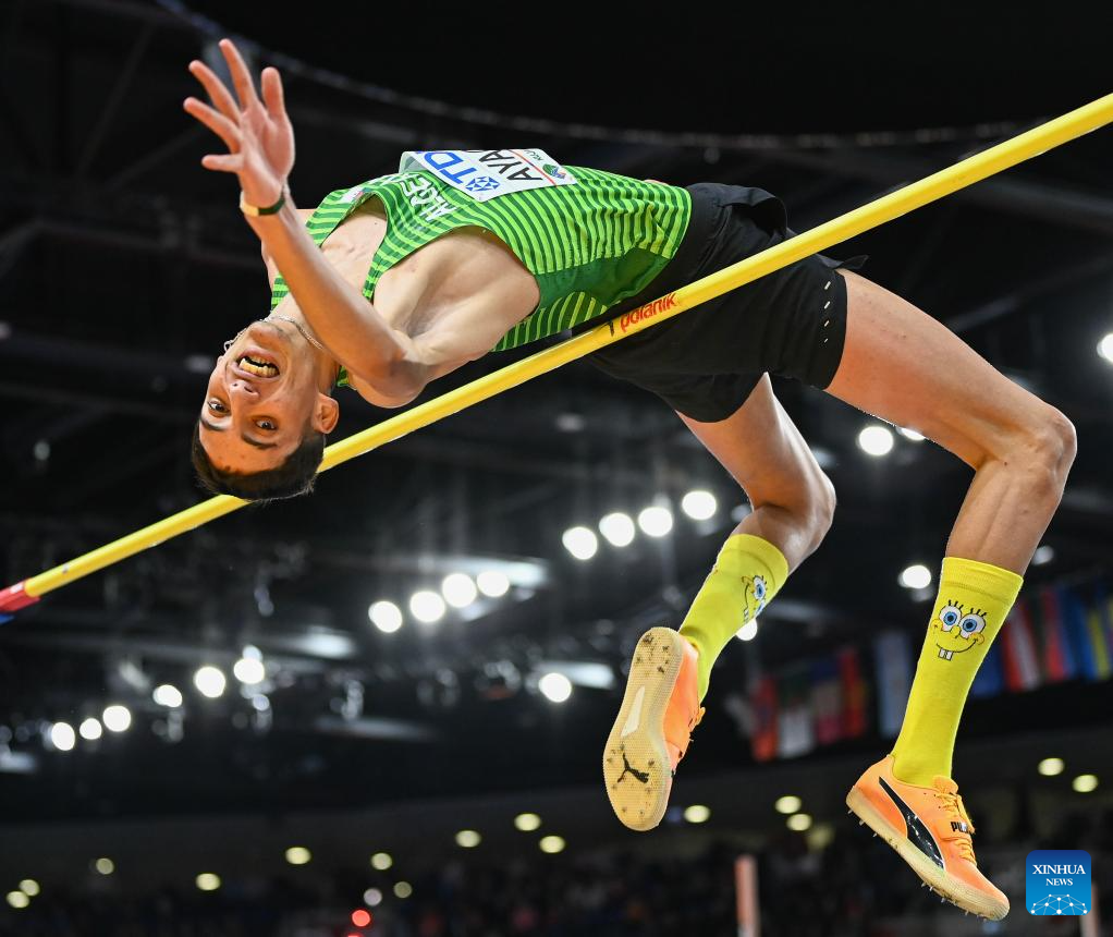 Shinno Tomohiro of Japan competes during the men's high jump final at the 2026 World Athletics Indoor Championships in Torun, Poland, March 21, 2026. (Xinhua/Zhang Haofu)
