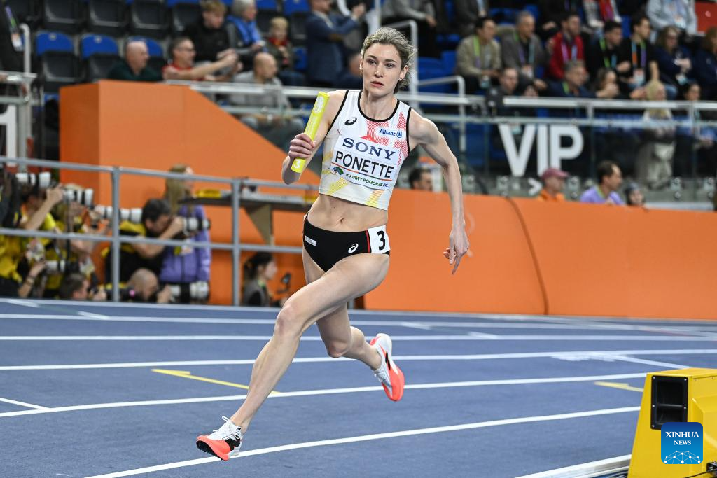 Helena Ponette of Belgium competes during the mixed 4x400m relay final at the 2026 World Athletics Indoor Championships in Torun, Poland, March 21, 2026. (Xinhua/Zhang Haofu)