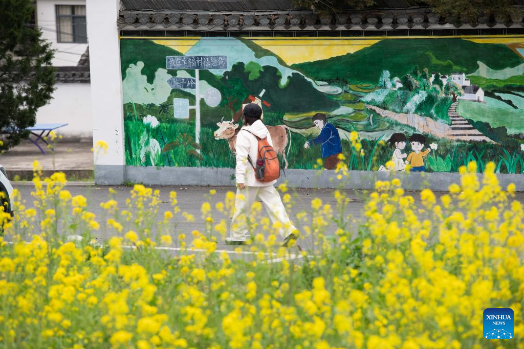 A tourist is pictured in Xingfu Village, Jixi County, Xuancheng City, east China's Anhui Province, March 22, 2026. (Xinhua/Zhang Duan)