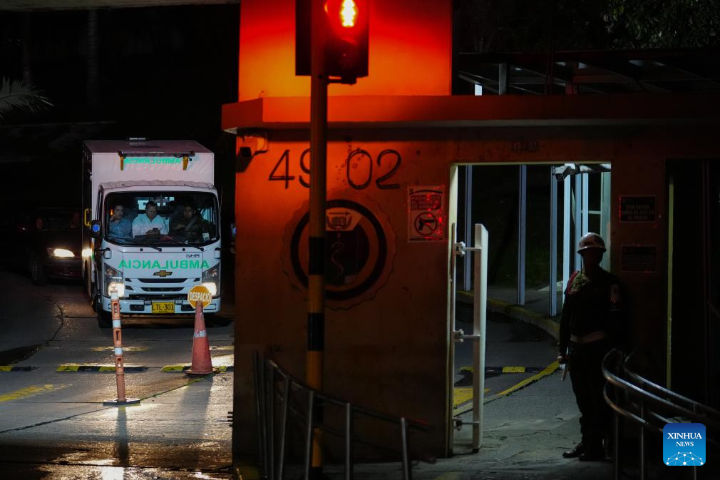 An ambulance leaves a military hospital after transporting the injured from a Colombian military aircraft crash, in Bogota, Colombia, on March 23, 2026. The death toll from a Colombian military aircraft crash in southern Colombia's Putumayo region has risen to 66, with 57 others injured, local media reported on Monday, citing military sources. (Photo by Andres Moreno/Xinhua)