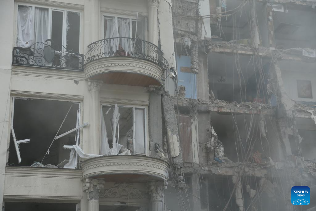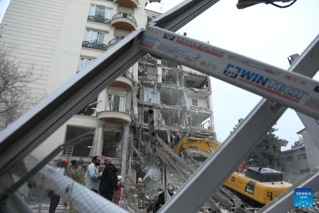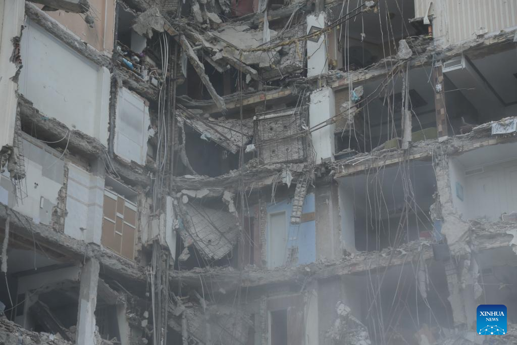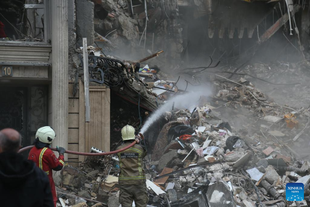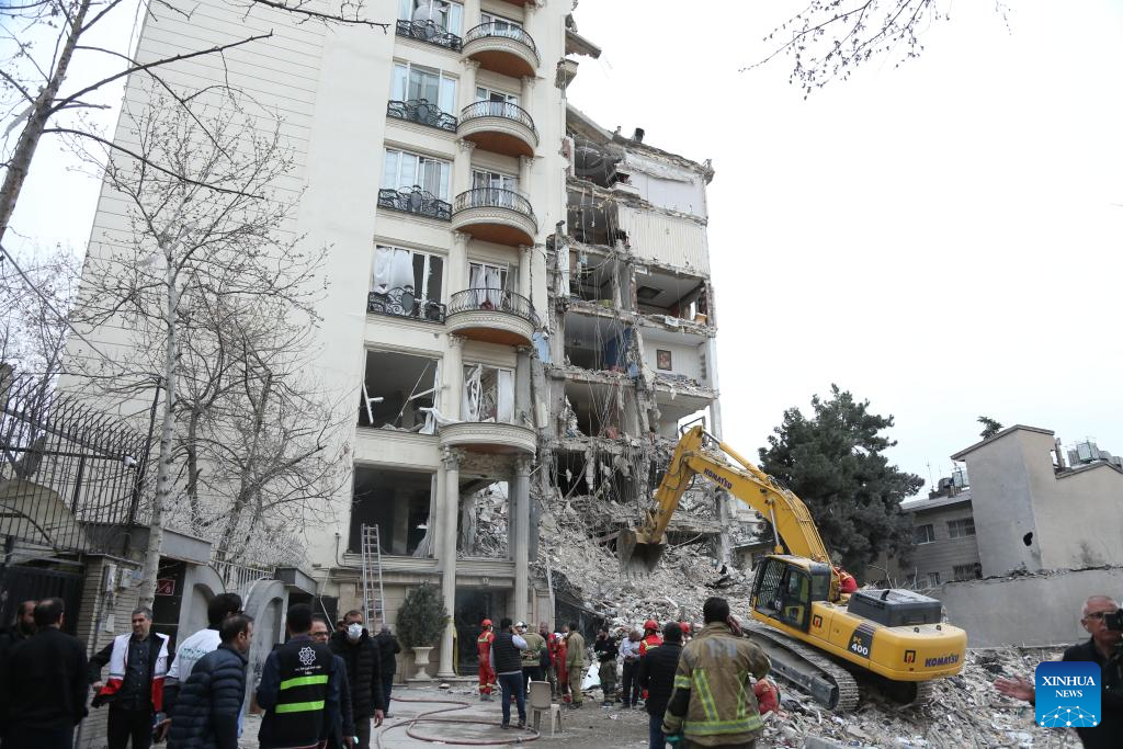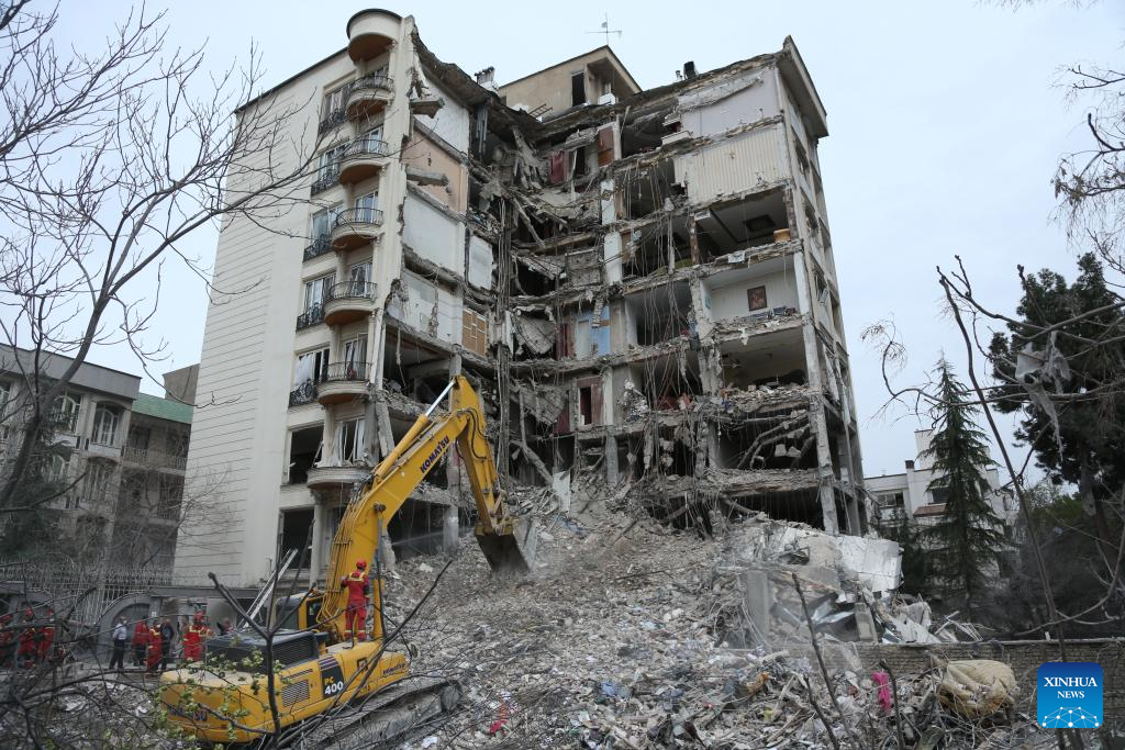 This photo taken on March 23, 2026 shows a destroyed building in a residential area after joint U.S.-Israeli strikes on Iran in Tehran, Iran. (Xinhua/Shadati)