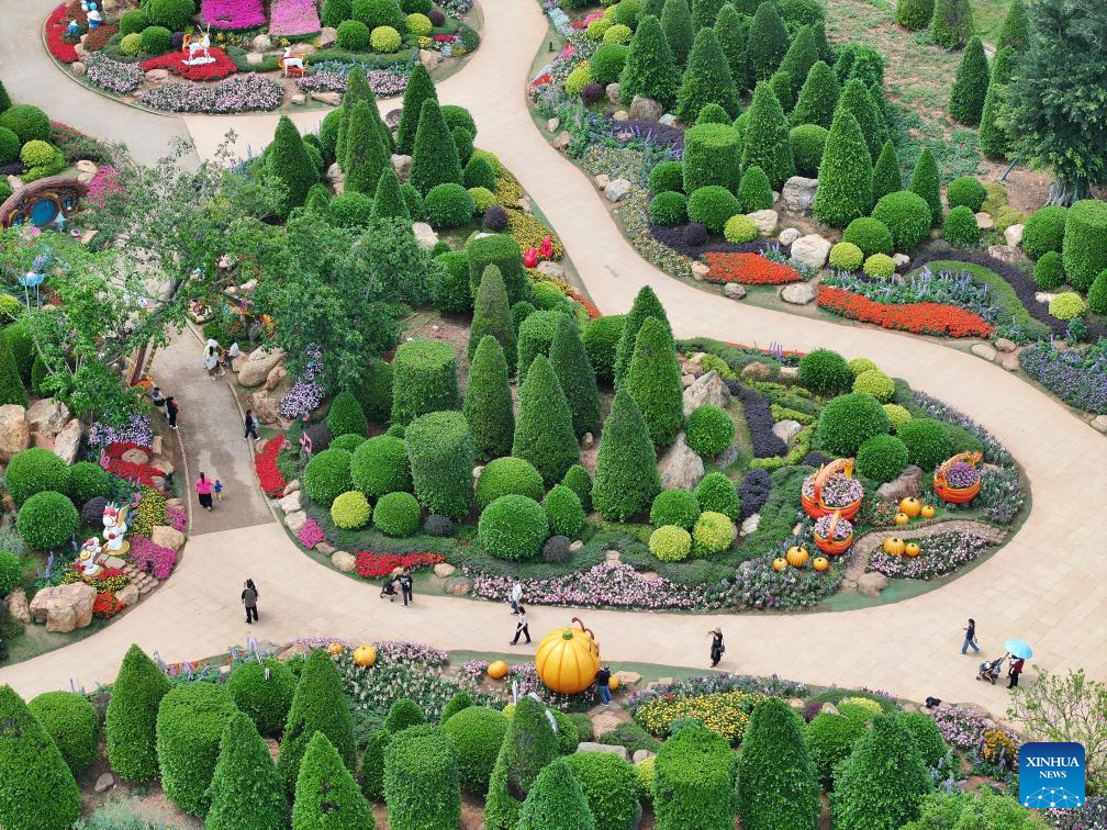 A drone photo taken on March 23, 2026 shows tourists visiting a scenic area in Nanning City, south China's Guangxi Zhuang Autonomous Region. (Photo by Yu Xiangquan/Xinhua)