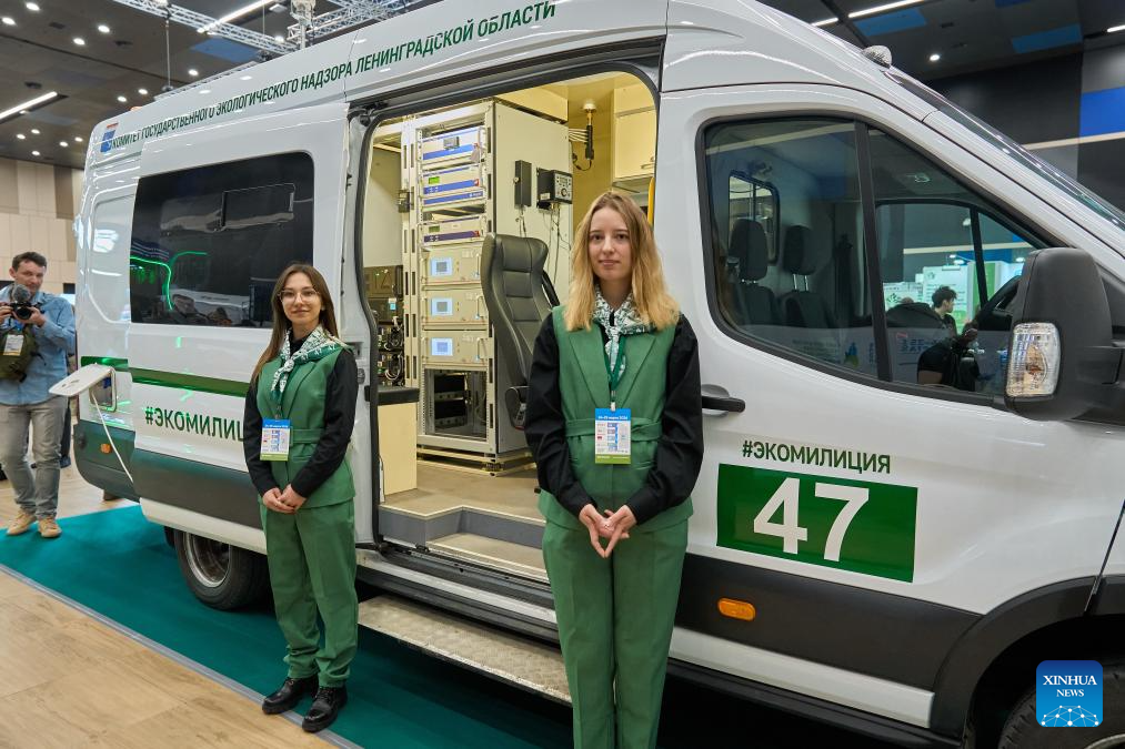 A mobile air monitoring system is exhibited at the "Ecology of a Big City" international environmental forum in St. Petersburg, Russia, March 24, 2026. The forum kicked off here on Tuesday, attracting more than 6,000 participants. (Photo by Guo Feizhou/Xinhua)
