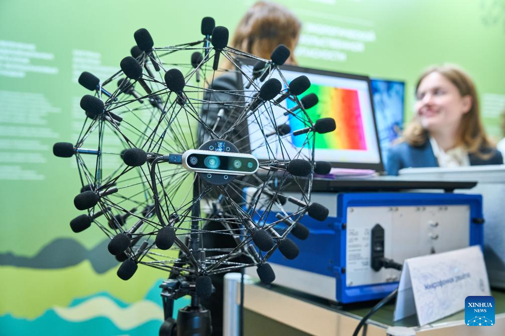 An acoustic detection system is exhibited at the "Ecology of a Big City" international environmental forum in St. Petersburg, Russia, March 24, 2026. The forum kicked off here on Tuesday, attracting more than 6,000 participants. (Photo by Guo Feizhou/Xinhua)