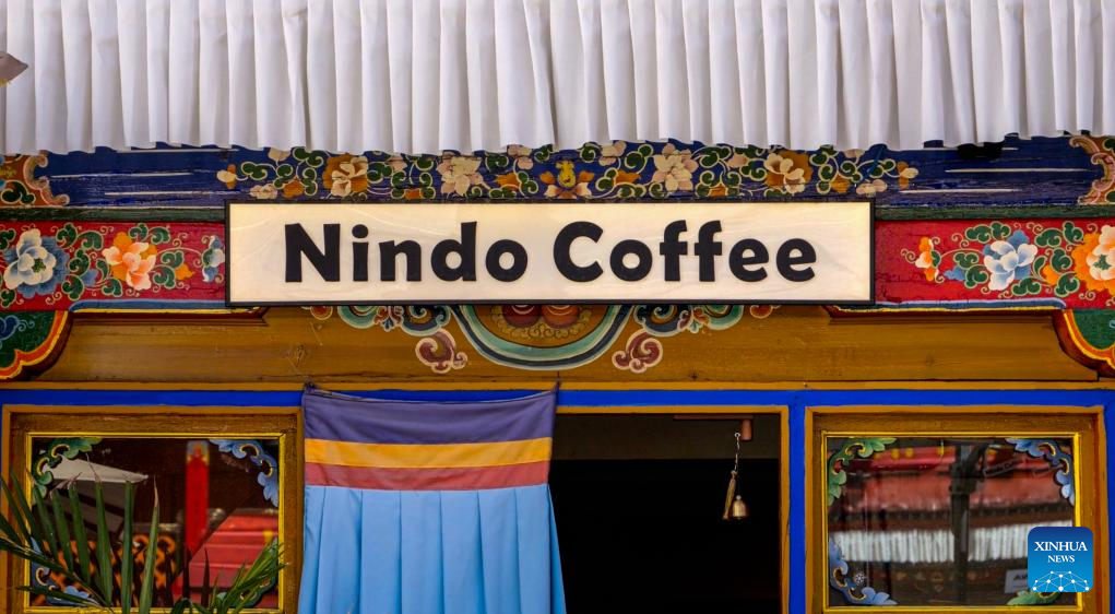 This photo taken on Sept. 23, 2025 shows an exterior view of a shop of Nindo coffee in Lhasa, southwest China's Xizang Autonomous Region. (Xinhua/Purbu Tsering)
