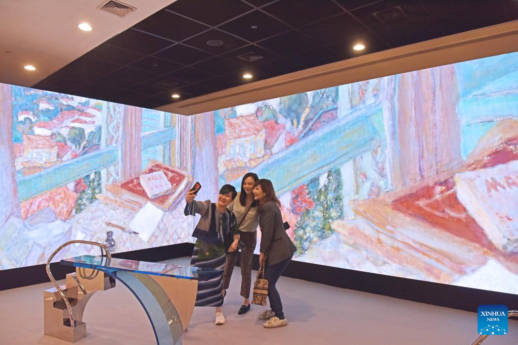Visitors take selfies at the preview of Art Basel Hong Kong 2026 at the Hong Kong Convention and Exhibition Center in south China's Hong Kong, March 25, 2026. Art Basel Hong Kong 2026 held its preview here on Wednesday, bringing together 240 galleries from 41 countries and regions. Featuring six themed sectors and programs, the fair will open to the public from Friday to Sunday. (Xinhua/Chen Duo)