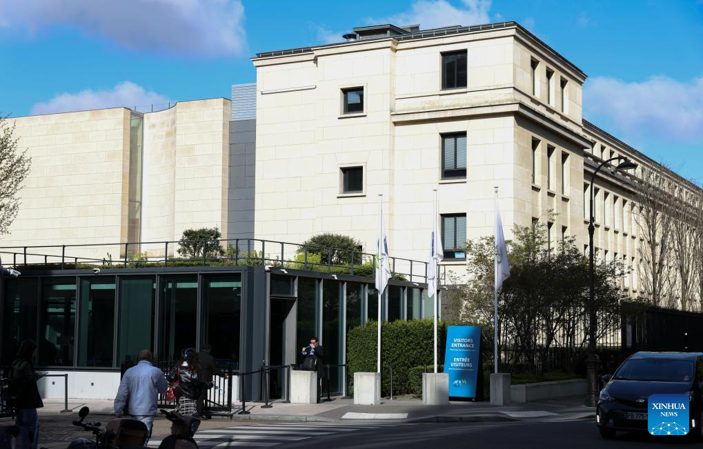 This photo taken on March 26, 2026 shows an exterior view of the headquarters of the Organization for Economic Cooperation and Development (OECD) in Paris, France. Global economic growth is projected to ease to 2.9 percent in 2026 from 3.3 percent in 2025, before edging up to 3.0 percent in 2027, the OECD said in its latest Economic Outlook on Thursday.