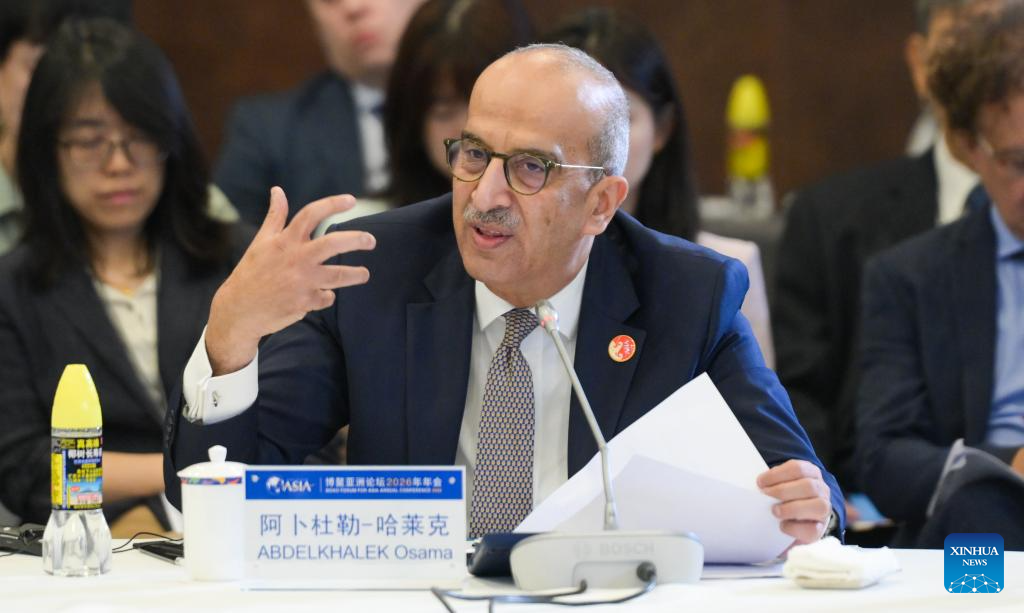 Abdelkhalek Osama, former assistant foreign minister of Egypt, also former permanent representative of Egypt to the United Nations, speaks at a panel discussion during the Boao Forum for Asia (BFA) Annual Conference 2026 in Boao, south China's Hainan Province, March 25, 2026. The panel discussion, themed on "Enhancing Global Economic Governance: the Role of the Global South," was held here on Wednesday. (Xinhua/Yang Guanyu)