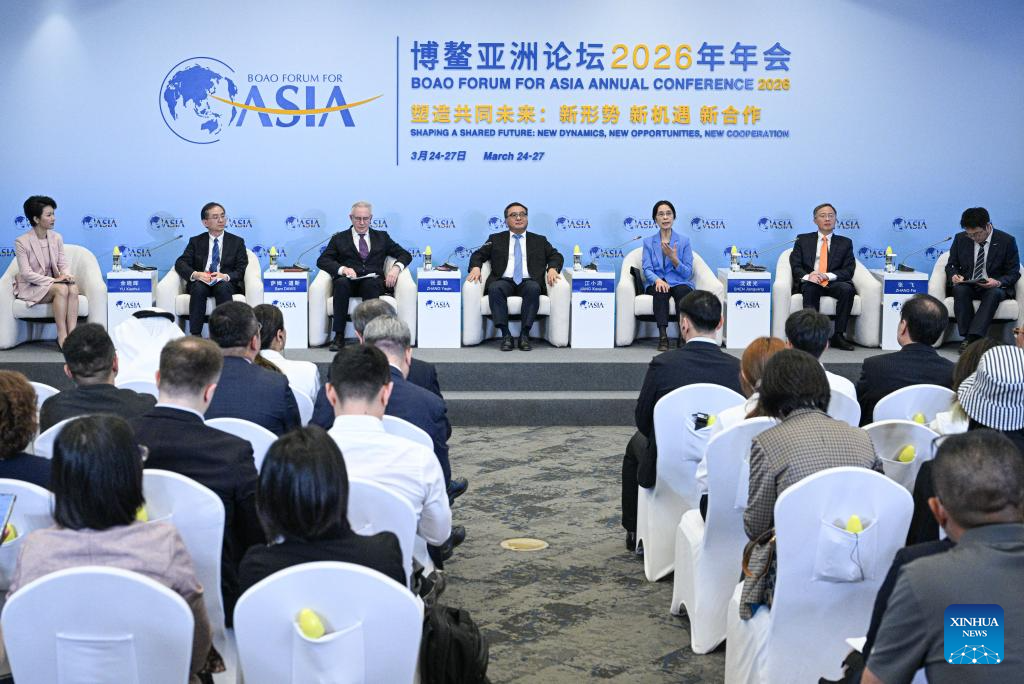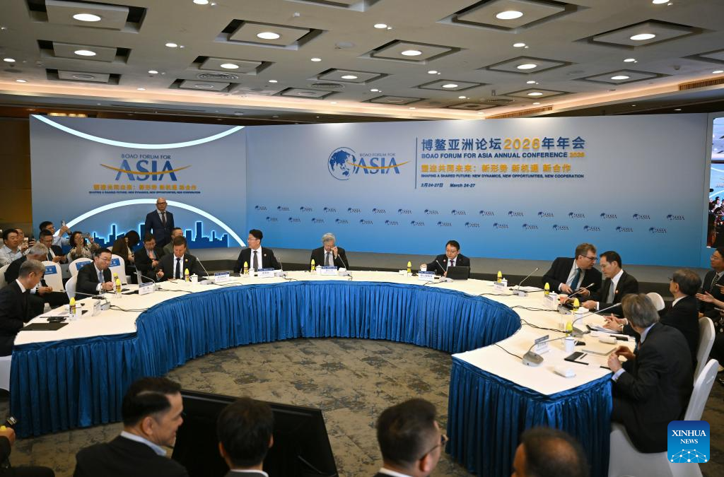 A panel discussion themed on "Unlocking the Greater Potential of RCEP" is held during the Boao Forum for Asia (BFA) Annual Conference 2026 in Boao, south China's Hainan Province, March 25, 2026. (Xinhua/Pu Xiaoxu)