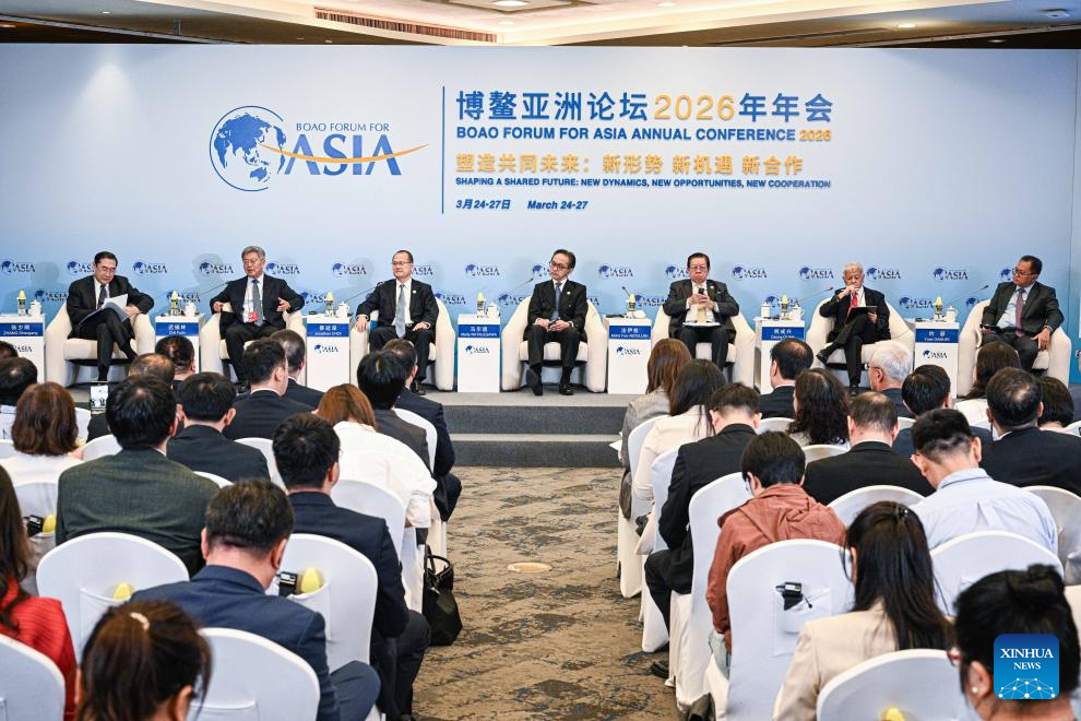 A panel discussion themed on "Transport-Energy Integration for a Sustainable Future" is held during the Boao Forum for Asia (BFA) Annual Conference 2026 in Boao, south China's Hainan Province, March 25, 2026. (Xinhua/Yang Guanyu)