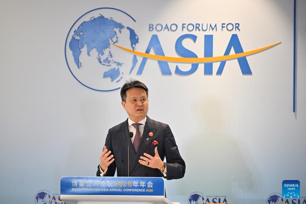 Daren Tang, director general of the World Intellectual Property Organization, speaks at high-level dialogues themed on "Injecting Certainty into an Uncertain World" during the Boao Forum for Asia (BFA) Annual Conference 2026 in Boao, south China's Hainan Province, March 25, 2026. (Xinhua/Guo Cheng)