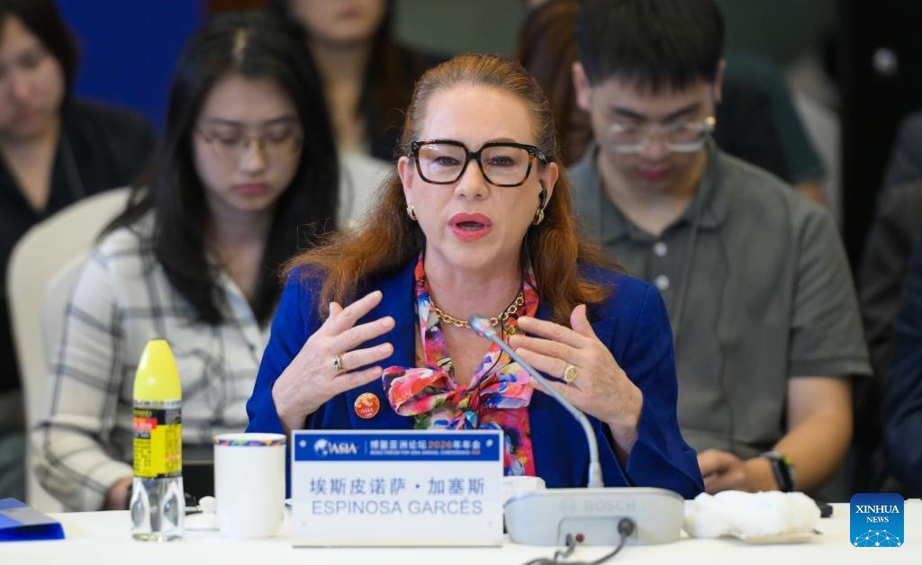 Maria Fernanda Espinosa Garces, president of the 73rd session of the UN General Assembly, speaks at a panel discussion during the Boao Forum for Asia (BFA) Annual Conference 2026 in Boao, south China's Hainan Province, March 25, 2026. The panel discussion, themed on "Enhancing Global Economic Governance: the Role of the Global South," was held here on Wednesday. (Xinhua/Yang Guanyu)