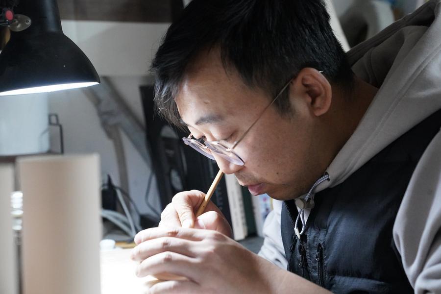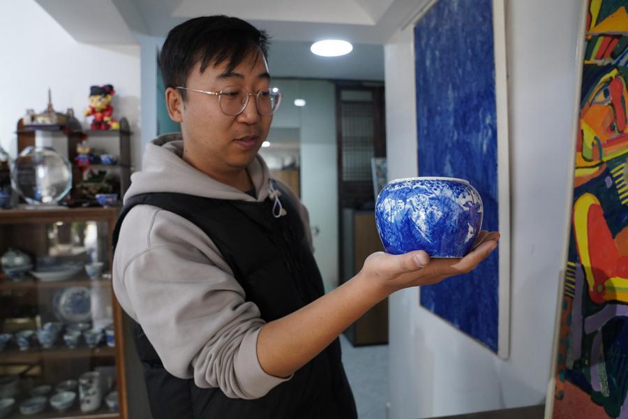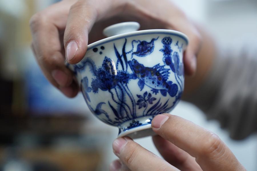 Cao Lang showcases a blue-and-white porcelain tea set at the studio in Jingdezhen, east China's Jiangxi Province, March 11, 2026. (Xinhua/Zhou Mi)Cao Lang showcases a specialized brush for blue-and-white porcelain painting at the studio in Jingdezhen, east China's Jiangxi Province, March 11, 2026. (Xinhua/Zhou Mi)Cao Lang makes blue-and-white porcelain ware at the studio in Jingdezhen, east China's Jiangxi Province, March 11, 2026. (Xinhua/Zhou Mi)This photo taken on March 11, 2026 shows a blue-and-white porcelain tea set created by Cao Lang and Hu Yunyue at their studio in Jingdezhen, east China's Jiangxi Province. (Xinhua/Zhou Mi)Hu Yunyue creates at the studio in Jingdezhen, east China's Jiangxi Province, March 11, 2026. (Xinhua/Zhou Mi)Cao Lang (L) and Hu Yunyue create at their studio in Jingdezhen, east China's Jiangxi Province, March 11, 2026. (Xinhua/Zhou Mi)Cao Lang creates at the studio in Jingdezhen, east China's Jiangxi Province, March 11, 2026. (Xinhua/Zhou Mi)This photo taken on March 11, 2026 shows a blue-and-white porcelain tea set created by Cao Lang and Hu Yunyue at their studio in Jingdezhen, east China's Jiangxi Province. (Xinhua/Zhou Mi)■