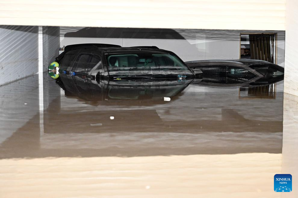 Cars are seen in a flooded basement after heavy rain in Mubarak Al-Kabeer Governorate, Kuwait, March 25, 2026. Heavy rainfall and unstable weather conditions affected several parts of Kuwait on Wednesday. (Photo by Asad/Xinhua)