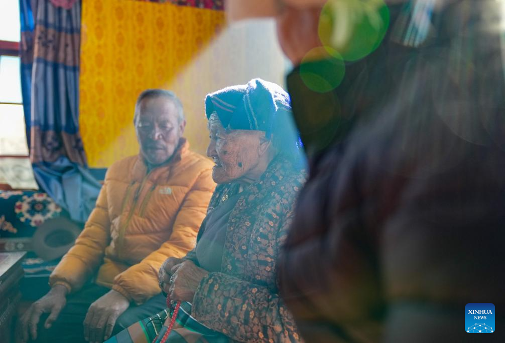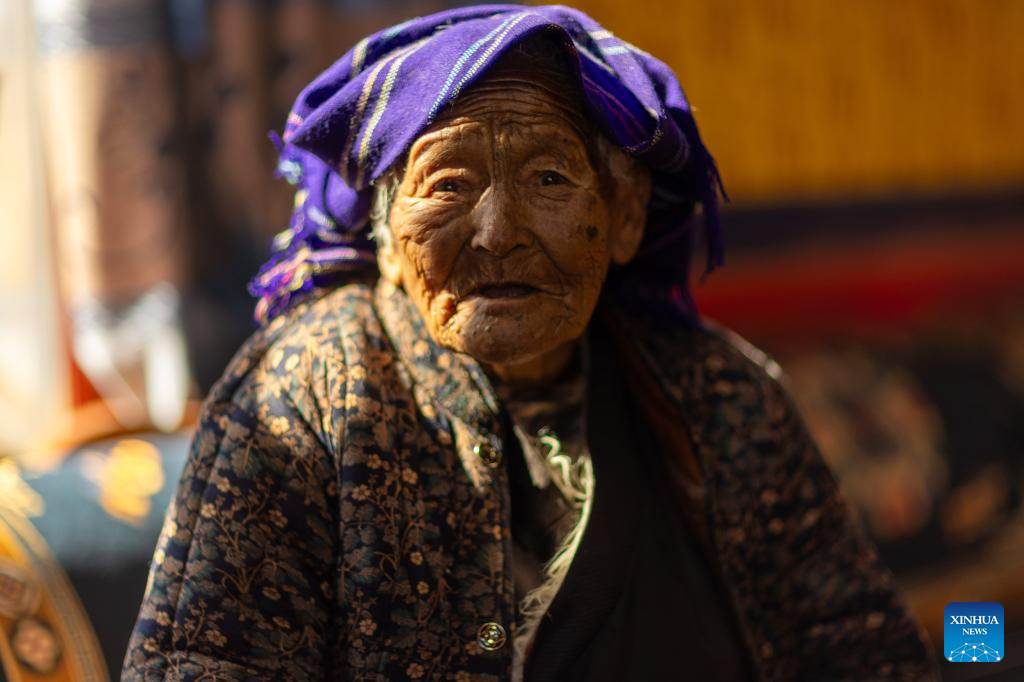 Konjo Chodron is pictured at home in Nyemo County, Lhasa City, southwest China's Xizang Autonomous Region, March 6, 2026. 95-year-old former serf Konjo Chodron lives in Nyemo County, Lhasa City, southwest China's Xizang Autonomous Region.