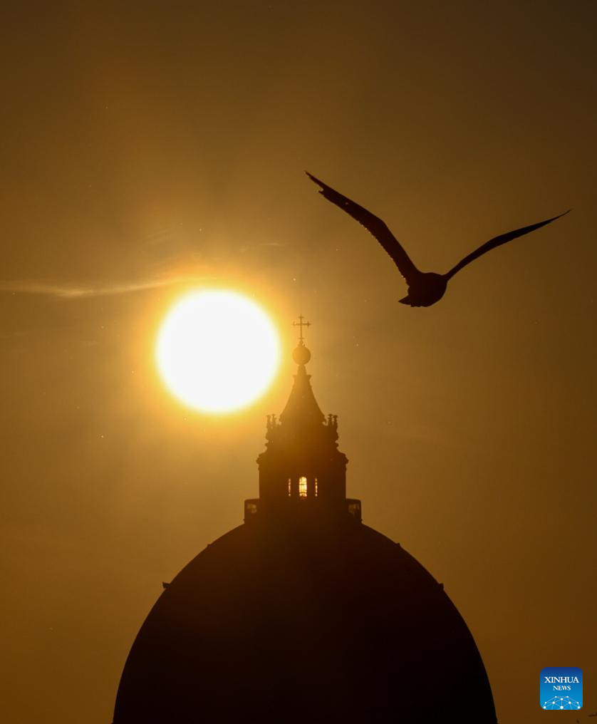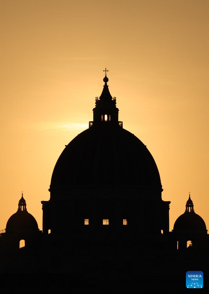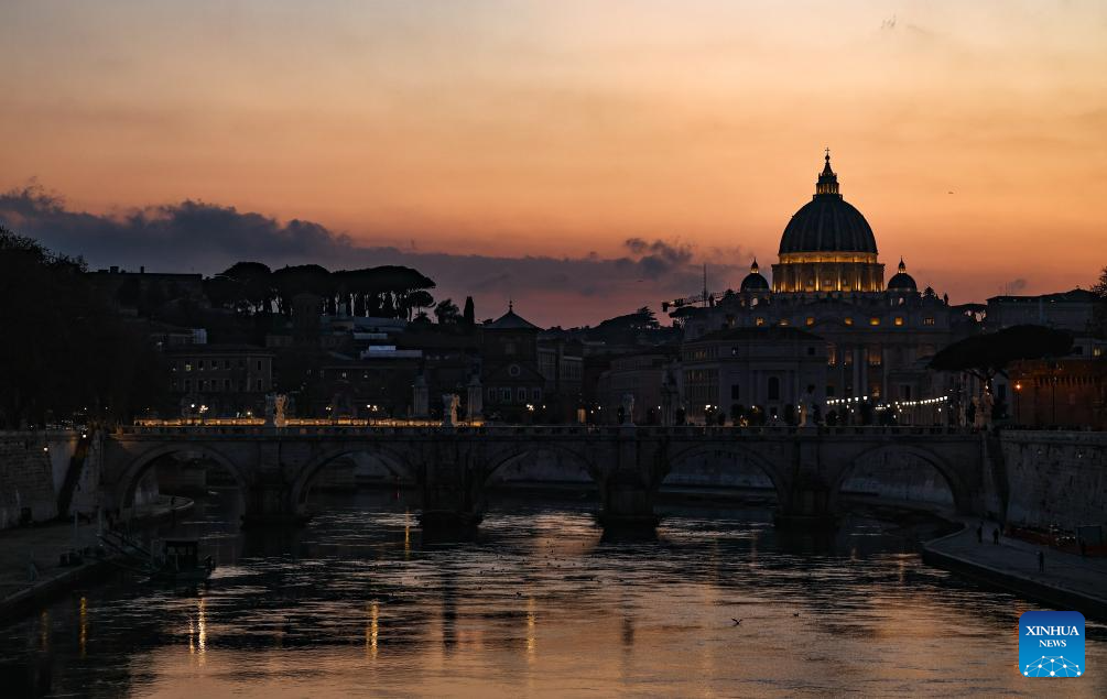 Photo taken on March 25, 2026 shows sunset view in Rome, capital of Italy. (Xinhua/Wang Kaiyan)
