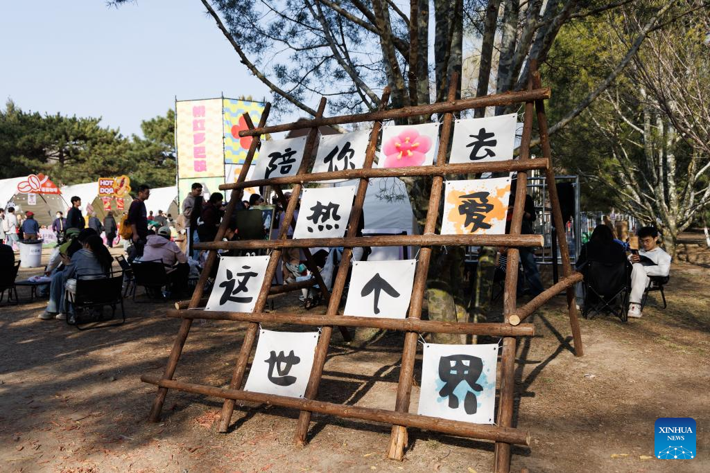 People attend a fair at the Beijing Olympic Forest Park in Beijing, capital of China, March 22, 2026. As temperature rises, multiple parks and scenic spots in Beijing have held spring-themed fairs and launched cultural and creative products, giving a nice boost to the spring economy. (Xinhua/Jin Liwang)