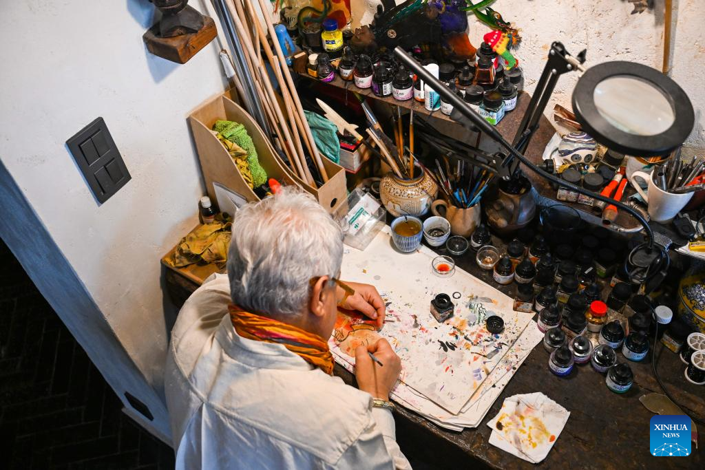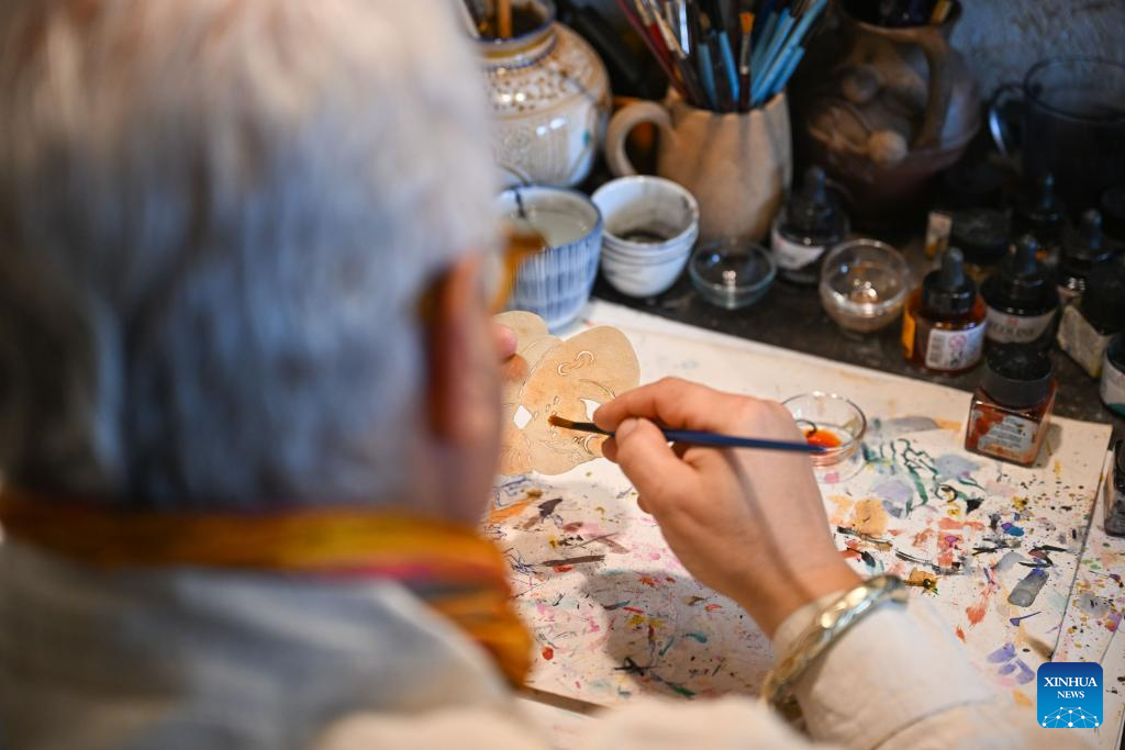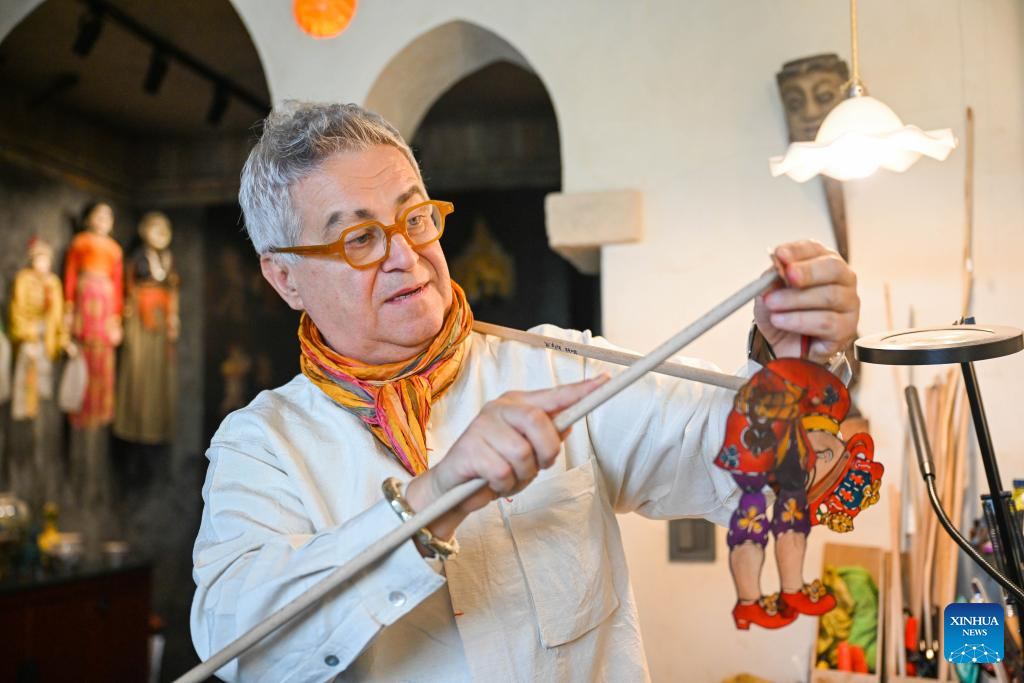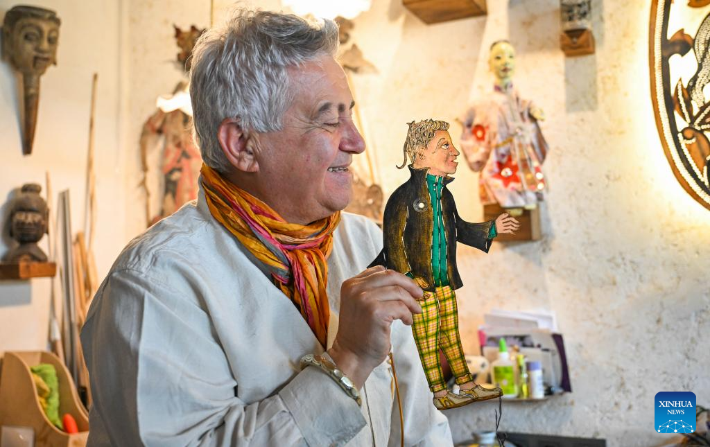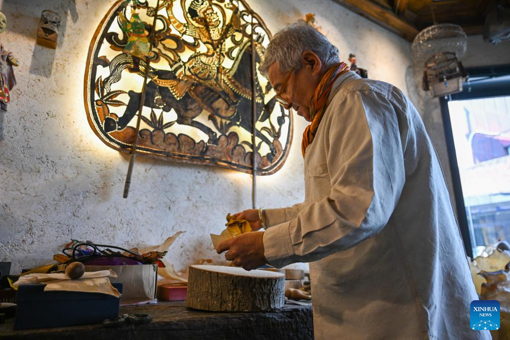 Puppeteer Cengiz Ozek works on an animal hide in Istanbul, Türkiye, March 26, 2026. (Xinhua/Liu Lei)