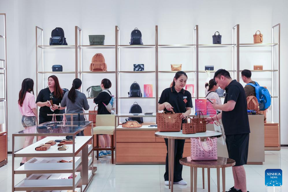 Customers shop at the Haikou Riyue Plaza Duty Free Shop in Haikou, south China's Hainan Province, March 25, 2026. The Hainan Free Trade Port (FTP), the world's largest free trade port by area, marks the 100th day of island-wide special customs operations on Friday, the launch of which represented a milestone in the FTP's journey toward becoming a world-class, high-level free trade port. (Xinhua/Zhang Liyun)