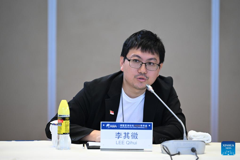 Wilson Lee Qihui, co-founder and CEO of Clean Kinetics Pte Ltd., speaks at a panel discussion themed on "Shaping the Future with Innovative Thinking: the Responsibility of Young Entrepreneurs" during the Boao Forum for Asia (BFA) Annual Conference 2026 in Boao, south China's Hainan Province, March 27, 2026. (Xinhua/Pu Xiaoxu)