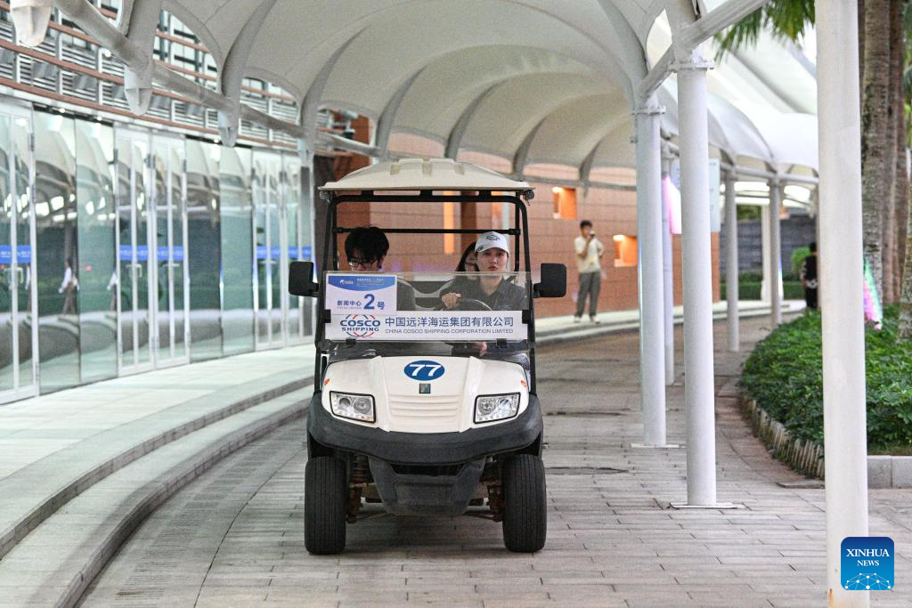 A staff member drives a new energy vehicle to transport journalists at the media center of Boao Forum for Asia (BFA) Annual Conference 2026 in Boao, south China's Hainan Province, March 26, 2026. Since the Boao Forum for Asia (BFA) was established 25 years ago, the concept of green operations has remained a steadfast principle of its annual conferences. This year's conference has further deepened green practices throughout the process, integrating sustainable development into all aspects such as venue operations, transportation support, conference services, among others. (Xinhua/Pu Xiaoxu)