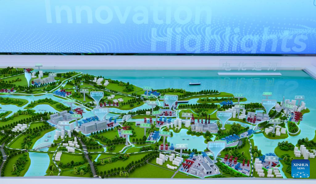 This photo shows a sand table of the "electrified canal" solution for the Beijing-Hangzhou Grand Canal, displayed by China Energy Engineering Group Co., Ltd. during the Boao Forum for Asia (BFA) Annual Conference 2026 in Boao, south China's Hainan Province, March 24, 2026. Since the Boao Forum for Asia (BFA) was established 25 years ago, the concept of green operations has remained a steadfast principle of its annual conferences. This year's conference has further deepened green practices throughout the process, integrating sustainable development into all aspects such as venue operations, transportation support, conference services, among others. (Xinhua/Yang Guanyu)