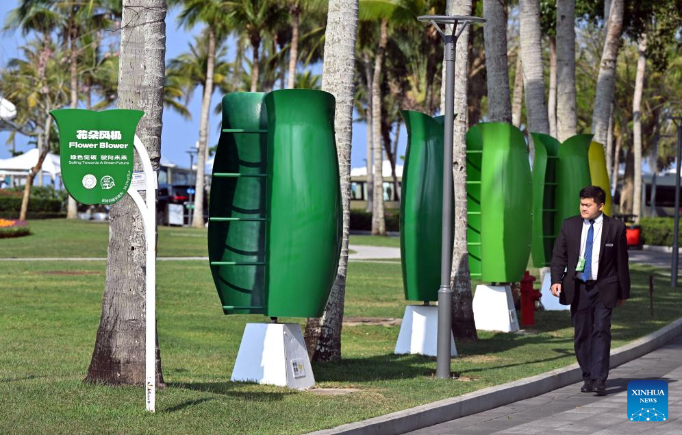 Flower-shaped wind turbines are seen at the venue of Boao Forum for Asia (BFA) Annual Conference 2026 in Boao, south China's Hainan Province, March 25, 2026. Since the Boao Forum for Asia (BFA) was established 25 years ago, the concept of green operations has remained a steadfast principle of its annual conferences. This year's conference has further deepened green practices throughout the process, integrating sustainable development into all aspects such as venue operations, transportation support, conference services, among others. (Xinhua/Guo Cheng)