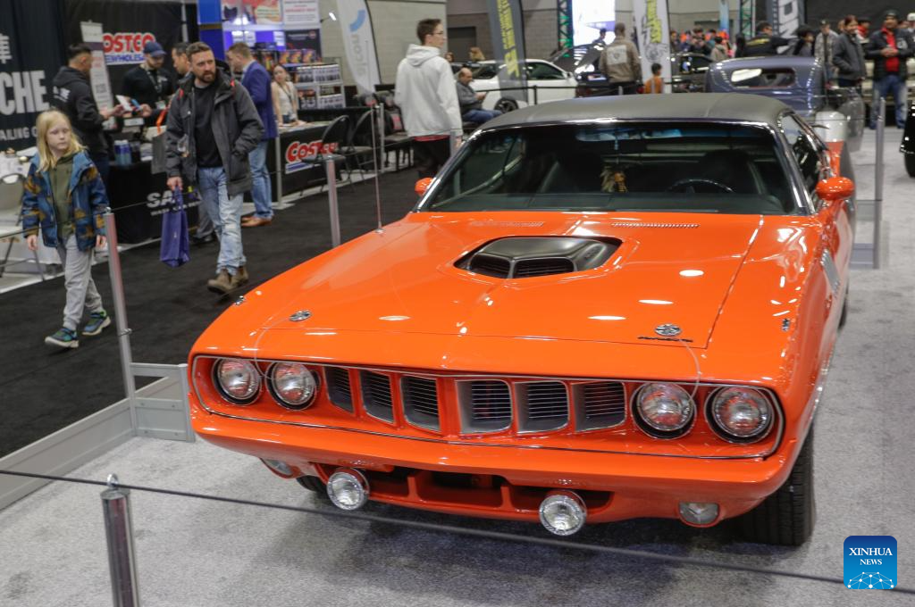 Visitors view a 1971 Plymouth Barracuda at the Horsepower Heaven event during the 2026 Vancouver International Auto Show in Vancouver, British Columbia, Canada, March 26, 2026.