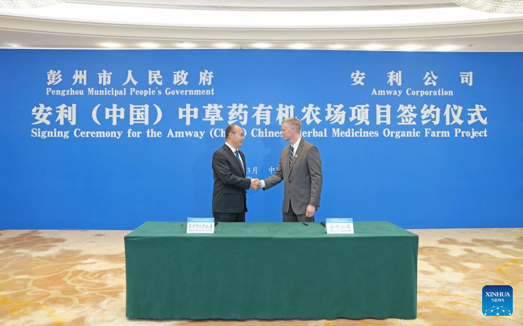 CHENGDU, March 27 (Xinhua) -- The signing ceremony of Amway (China) Chinese Herbal Medicines Organic Farm was held on Thursday in Chengdu, capital of southwest China's Sichuan Province, marking the launch of its first self-owned organic farm outside the Americas.