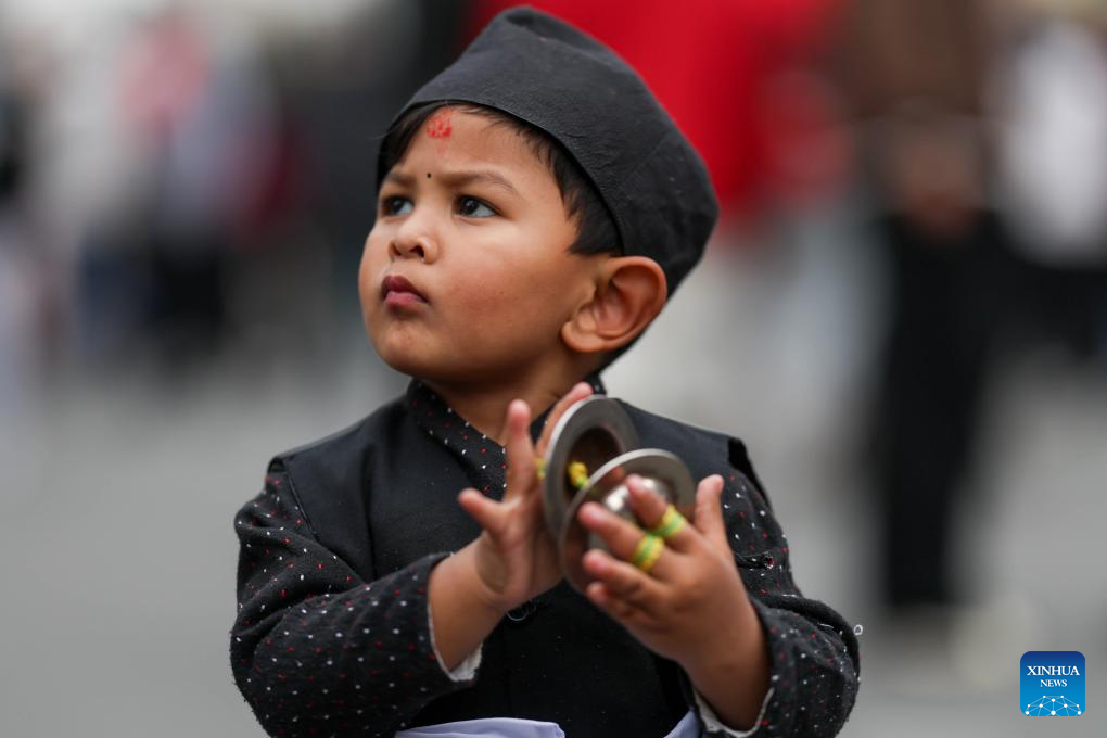A boy takes part in the Seto Machindranath chariot procession in Kathmandu, Nepal, March 26, 2026. Seto Machindranath is known as the god of rain and both Hindus and Buddhists worship Machindranath for good rain. (Photo by Sulav Shrestha/Xinhua)