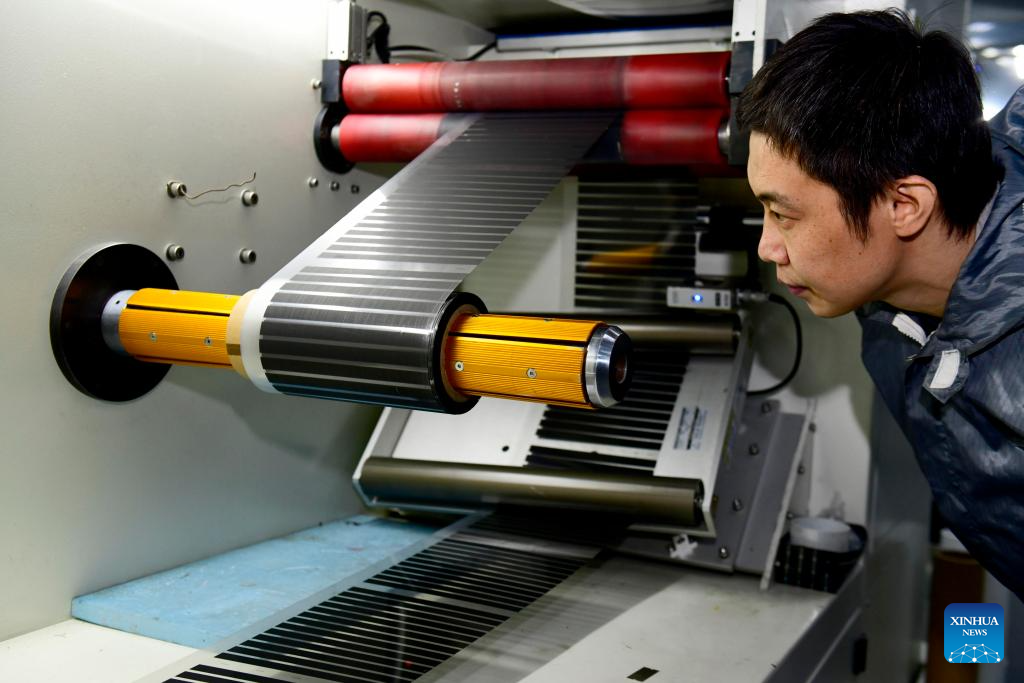 A staff member cleans photovoltaic panels in Juxian County of Rizhao City, east China's Shandong Province, March 27, 2026. Rizhao has vigorously advanced technological upgrading initiatives, continuously promoting the transformation of traditional industries toward higher-end, intelligent, and green development, while fostering and expanding emerging and future-oriented industries, and striving to build a modern industrial system with distinctive port-based characteristics. (Xinhua/Guo Xulei)