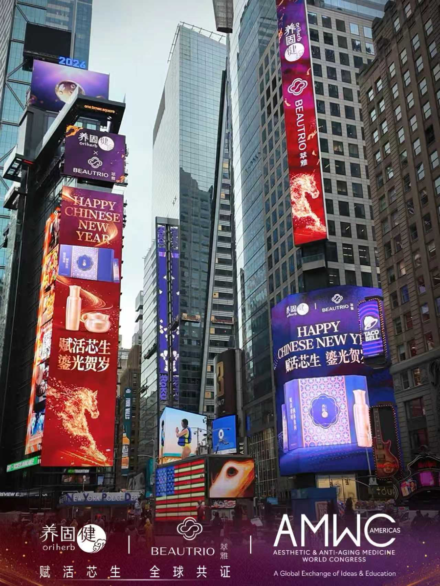 The Oriherb & Beautrio collection was featured on billboards in Times Square, New York City, the United States. (Photo provided by Infinitus)