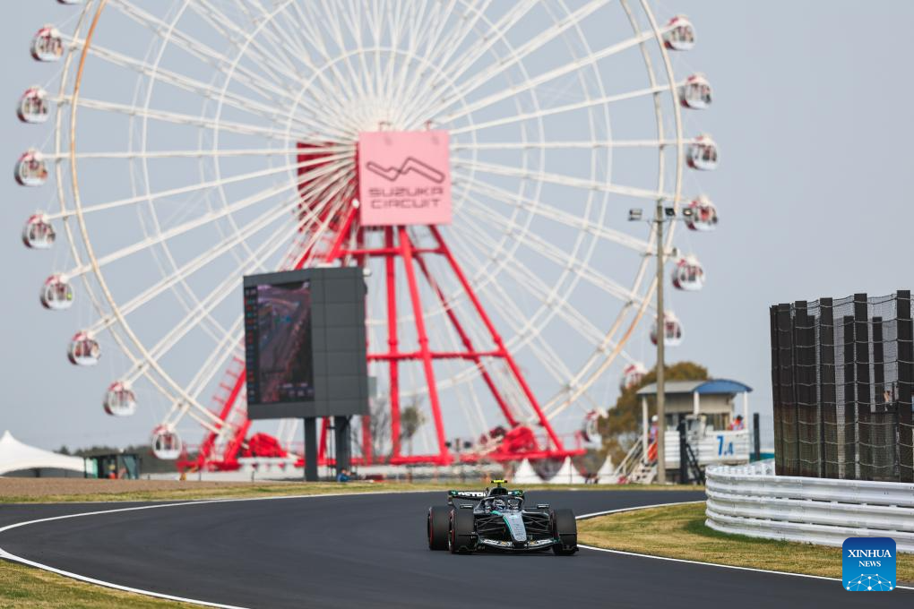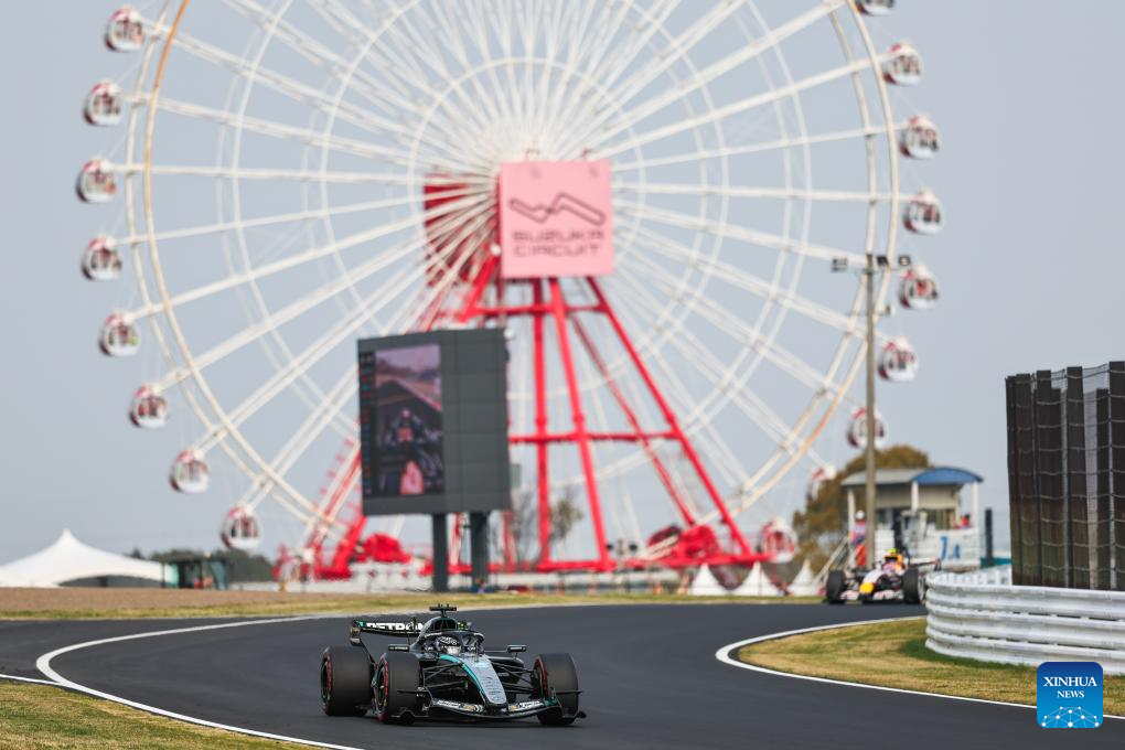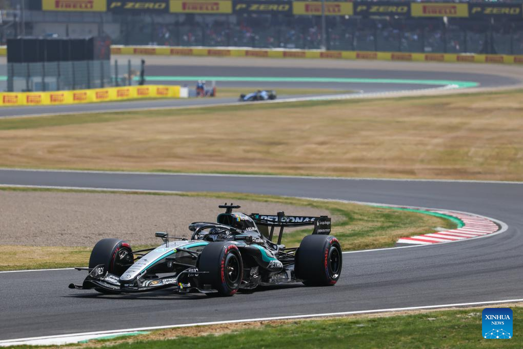 Mercedes' George Russell of Britain competes during the Qualifying Session of Formula One Japanese Grand Prix at Suzuka Circuit in Suzuka, Japan, March 28, 2026. (Photo by Li Chao/Xinhua)