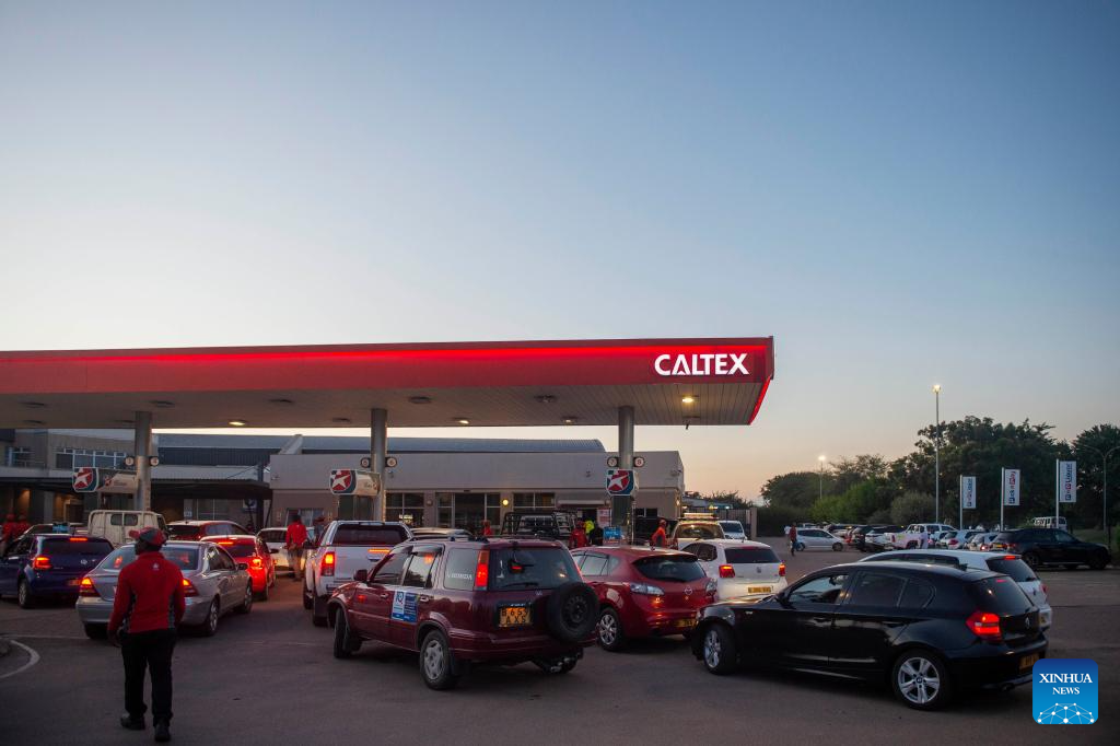 Vehicles queue at a gas station in Gaborone, Botswana, March 27, 2026. The Botswana Energy Regulatory Authority (BERA) has announced a significant increase in the retail pump prices of petrol, diesel, and illuminating paraffin, which were scheduled to come into effect at local time 00:01 on Saturday. (Photo by Tshekiso Tebalo/Xinhua)