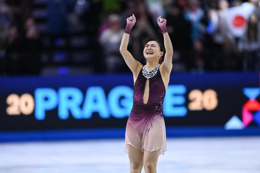 BEIJING, March 28 (Xinhua) -- Japan's Kaori Sakamoto put an end to her illustrious career in storybook fashion, capturing her fourth world title with a near-flawless free skate at the 2026 ISU World Figure Skating Championships in Prague on Friday.