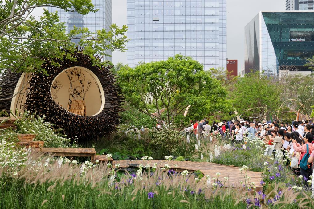 People visit a flower show in Shenzhen, south China's Guangdong Province, on March 27, 2026. The 2026 Guangdong-Hong Kong-Macao Greater Bay Area (GBA) Flower Show kicked off on Friday at Bijiashan Sports Park in Shenzhen, and will run until April 6. (Xinhua/Liang Xu)