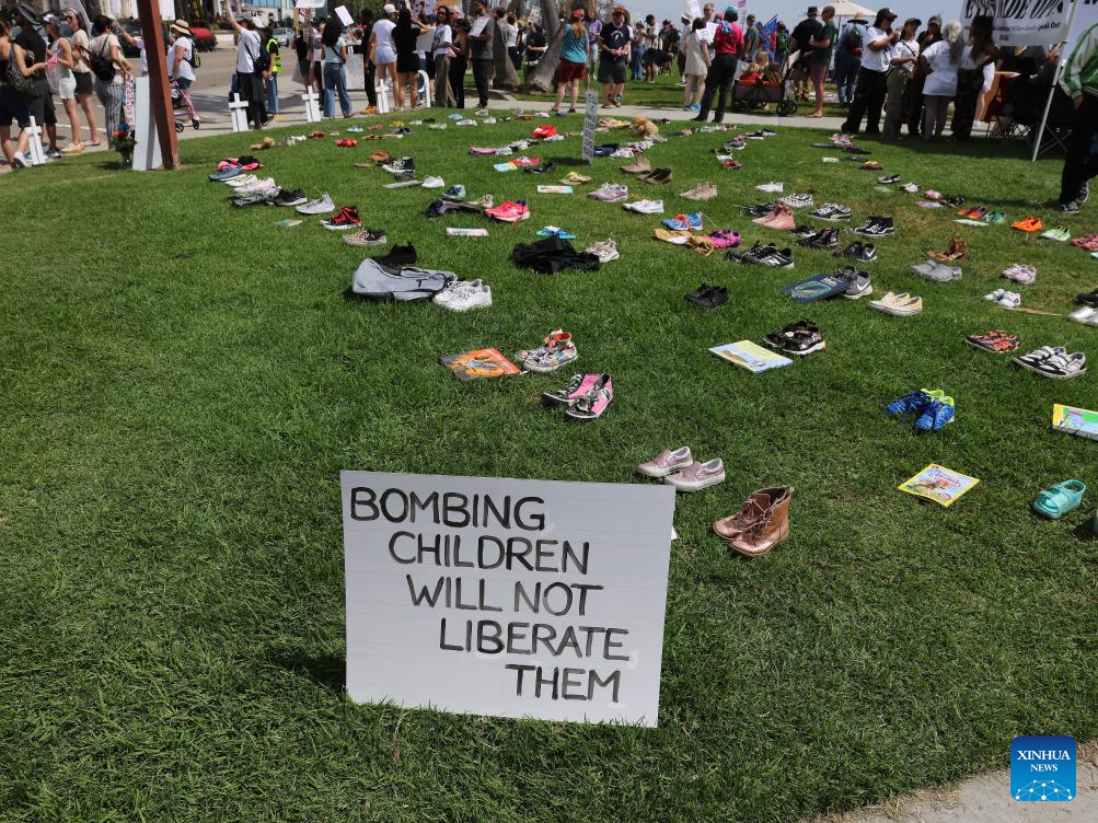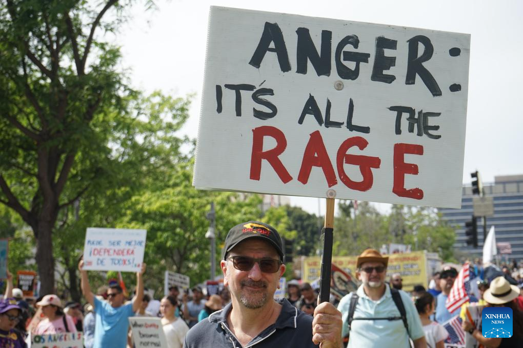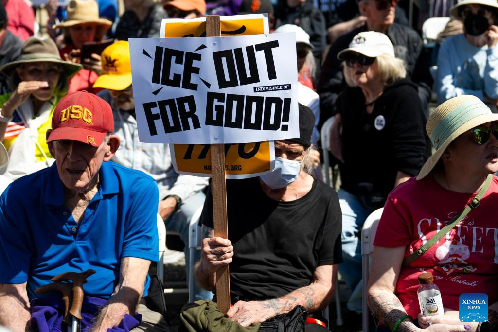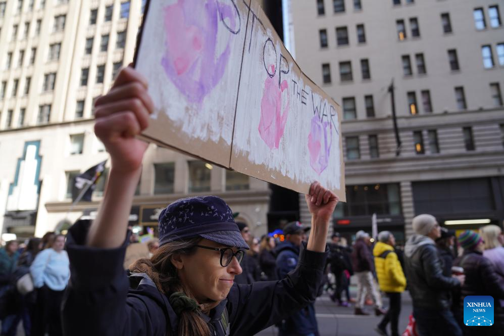 "The United States is starting a war that is unjust and unnecessary," Carolyn Rill, a demonstrator, told Xinhua, referring to the ongoing U.S. war on Iran. "They are also taking away money from important services of the U.S. federal government, hurting people's rights."