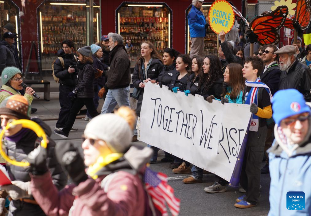 SACRAMENTO/NEW YORK, United States, March 28 (Xinhua) -- Millions of Americans took to the streets Saturday in the third wave of "No Kings" rallies across the United States, protesting policies of the U.S. administration, ranging from military action in Iran to controversial immigration enforcement.