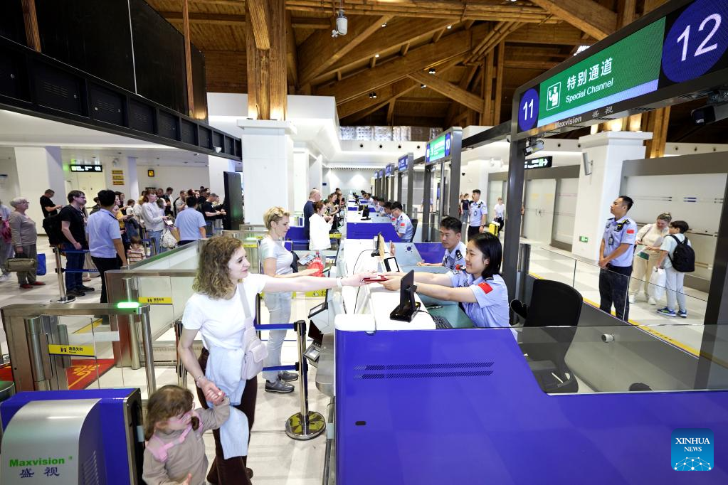 Inbound passengers go through border control at Sanya Phoenix International Airport in Sanya, south China's Hainan Province, March 27, 2026. The Hainan Free Trade Port (FTP), the world's largest free trade port by area, marks the 100th day of island-wide special customs operations on Friday. In the course of the past 100 days, the number of visa-free inbound passengers jumped by over 54 percent year on year. (Photo by Meng Xushun/Xinhua)
