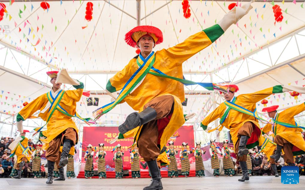 A performance is staged in celebration of the Serfs' Emancipation Day at a park in Lhasa, capital of southwest China's Xizang Autonomous Region, March 28, 2026.