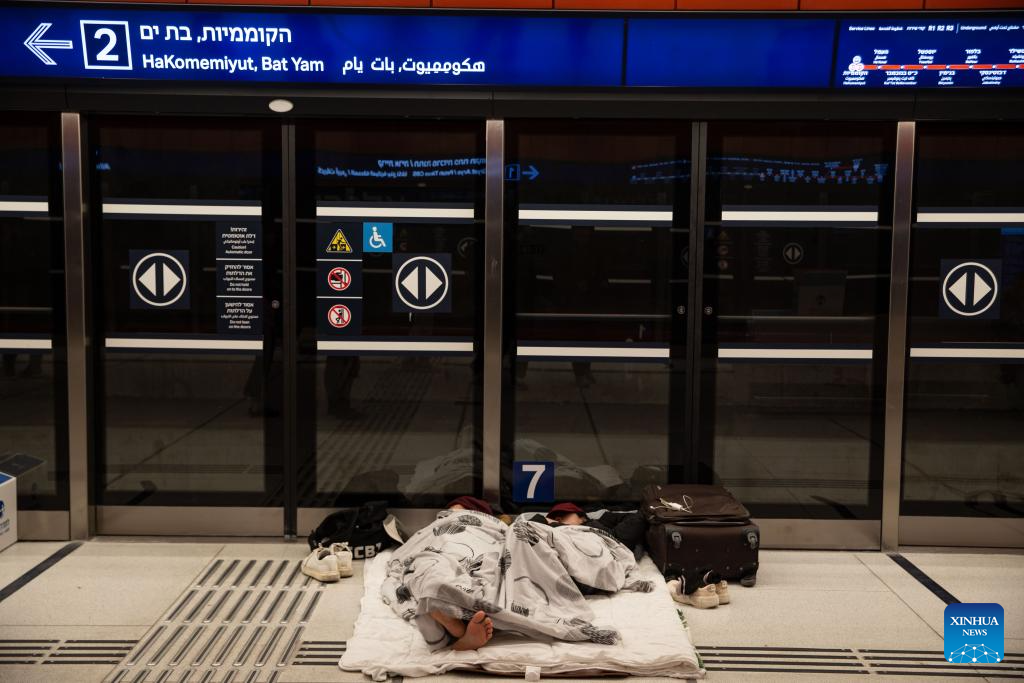 People sleep on the platform of a metro station in downtown Tel Aviv, Israel, March 2, 2026. The U.S.-Israel-Iran conflict entered its 30th day on Sunday. The Middle East is once again caught in a cycle of escalating violence. Civilian casualties are mounting, regional tensions are intensifying, and the risk of a wider war grows by the day. (Xinhua/Chen Junqing)