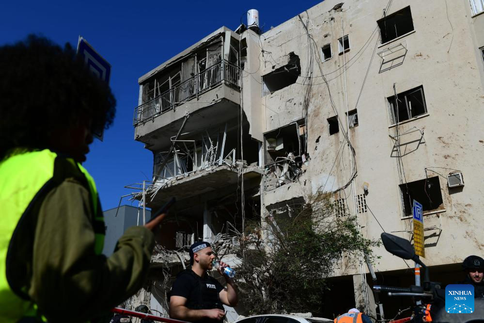 A member of the Israeli security and rescue forces works at the scene where a ballistic missile fired from Iran hit and caused damage in Tel Aviv, Israel, early on March 1, 2026. The U.S.-Israel-Iran conflict entered its 30th day on Sunday. The Middle East is once again caught in a cycle of escalating violence. Civilian casualties are mounting, regional tensions are intensifying, and the risk of a wider war grows by the day. (Gideon Markowicz/JINI via Xinhua)