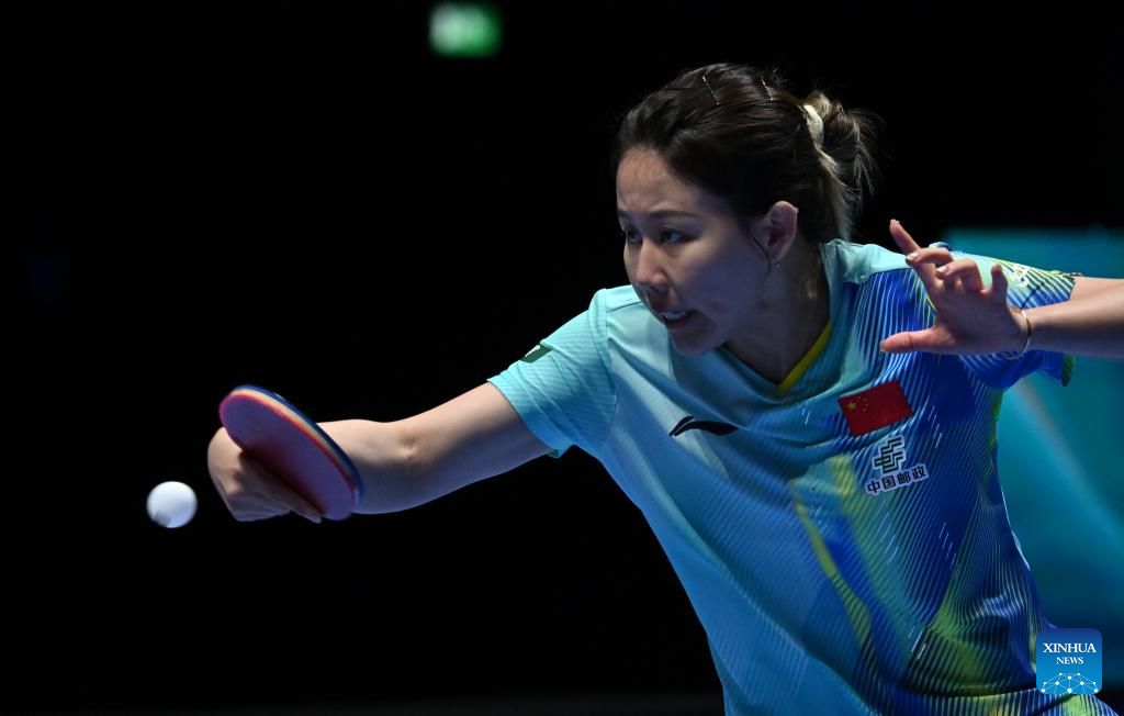 Linda Bergstrom of Sweden competes during the women's singles group 10 match between Shin Yubin of South Korea and Linda Bergstrom of Sweden at the ITTF Men's and Women's World Cup 2026 in Macao, China, March 30, 2026. (Xinhua/Cheong Kam Ka)