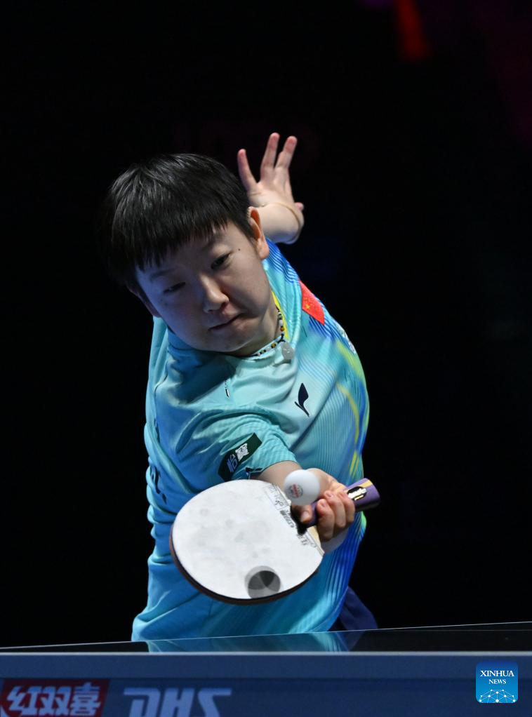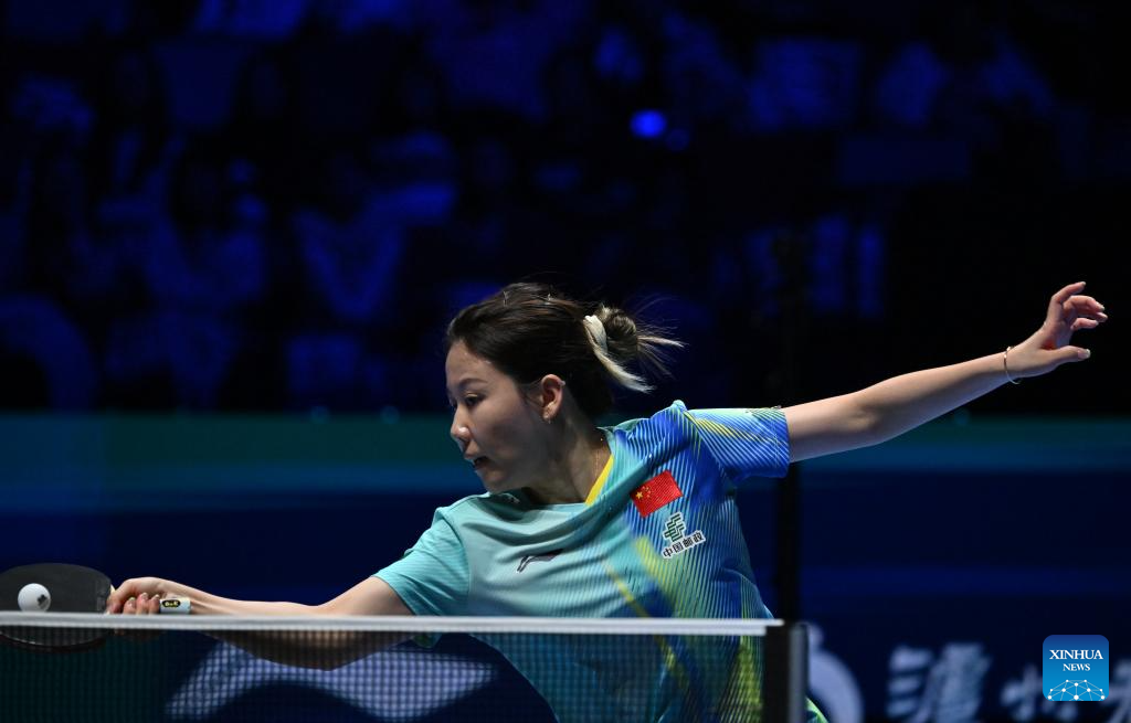 Sun Yingsha competes during the women's singles group 1 match between Sun Yingsha of China and Li Yu-Jhun of Chinese Taipei at the ITTF Men's and Women's World Cup 2026 in Macao, China, March 30, 2026. (Xinhua/Yu Yang)