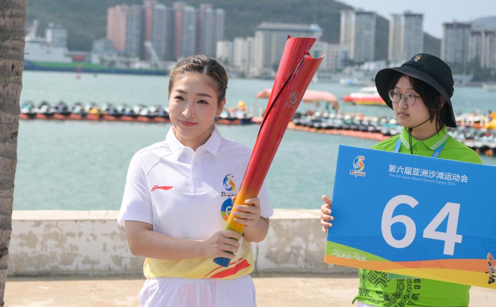 The flame is displayed after being lit during the flame lighting ceremony for the 2026 Asian Beach Games in Sanya, south China's Hainan Province, March 30, 2026. (Xinhua/Pu Xiaoxu)The flame is displayed after being lit during the flame lighting ceremony for the 2026 Asian Beach Games in Sanya, south China's Hainan Province, March 30, 2026. (Xinhua/Pu Xiaoxu) The flame is lit during the flame lighting ceremony for the 2026 Asian Beach Games in Sanya, south China's Hainan Province, March 30, 2026. (Xinhua/Pu Xiaoxu) The flame is displayed after being lit during the flame lighting ceremony for the 2026 Asian Beach Games in Sanya, south China's Hainan Province, March 30, 2026. (Xinhua/Pu Xiaoxu) Chinese table tennis player Liu Shiwen holds the torch during the torch relay for the 6th Asian Beach Games Sanya 2026 in Sanya, south China's Hainan Province, March 30, 2026. (Xinhua/Yang Guanyu) Chinese freestyle aerials skier Qi Guangpu runs holding the torch during the torch relay for the 6th Asian Beach Games Sanya 2026 in Sanya, south China's Hainan Province, March 30, 2026. (Xinhua/Guo Cheng) Chinese weightlifter Shi Zhiyong holds the torch during the torch relay for the 6th Asian Beach Games Sanya 2026 in Sanya, south China's Hainan Province, March 30, 2026. (Xinhua/Yang Guanyu) Chinese diver Chang Yani runs holding the torch during the torch relay for the 6th Asian Beach Games Sanya 2026 in Sanya, south China's Hainan Province, March 30, 2026. (Xinhua/Yang Guanyu) Chinese freestyle aerials skier Qi Guangpu holds the torch during the flame return ceremony of torch relay for the 6th Asian Beach Games Sanya 2026 in Sanya, south China's Hainan Province, March 30, 2026. (Xinhua/Guo Cheng) Chinese freestyle aerials skier Qi Guangpu (L) holds the torch during the flame return ceremony of torch relay for the 6th Asian Beach Games Sanya 2026 in Sanya, south China's Hainan Province, March 30, 2026. (Xinhua/Guo Cheng)