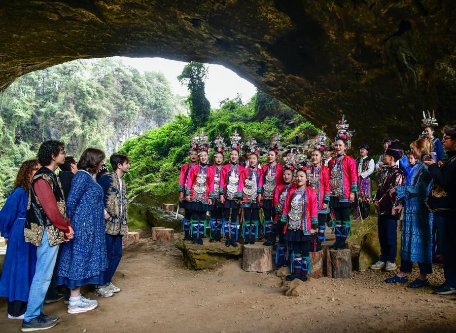 GUIYANG/CHONGQING, March 30 (Xinhua) -- Set within the natural amphitheater of the Tianshengqiao Bridge -- a centuries-old limestone arch in southwest China's Guizhou Province -- the resonant harmonies of traditional Dong ethnic songs intertwined with the crisp melodies of an American a cappella group, their unamplified voices blending beneath the stone.