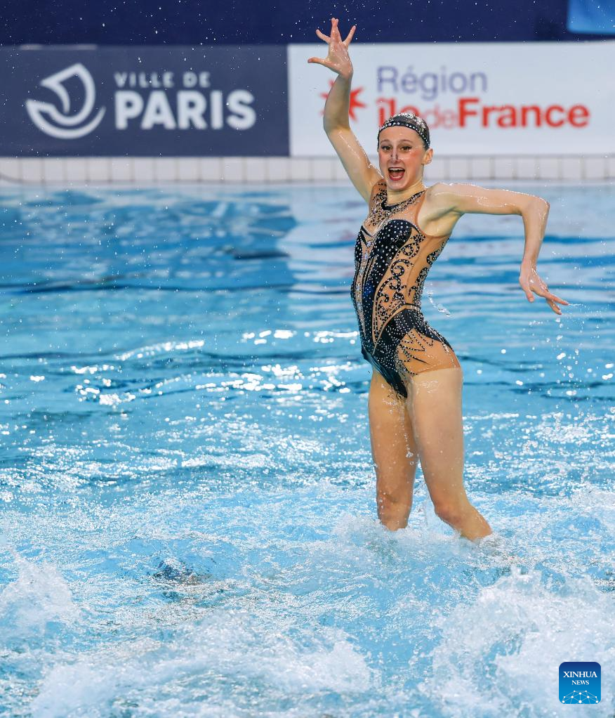 Team Ukraine compete during the team acrobatic final at the World Aquatics Artistic Swimming World Cup 2026 - Stop 2 in Paris, France, March 29, 2026. (Xinhua/Wu Huiwo)