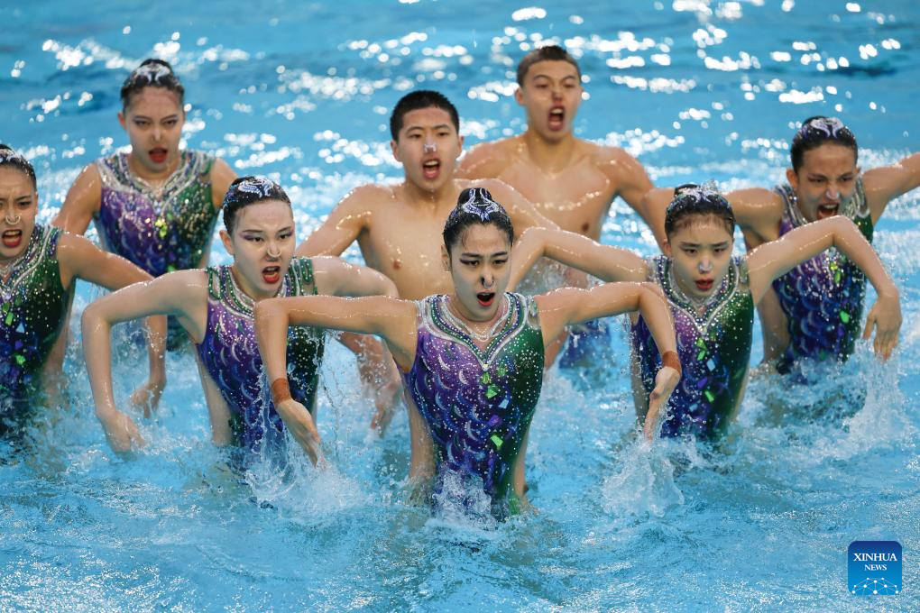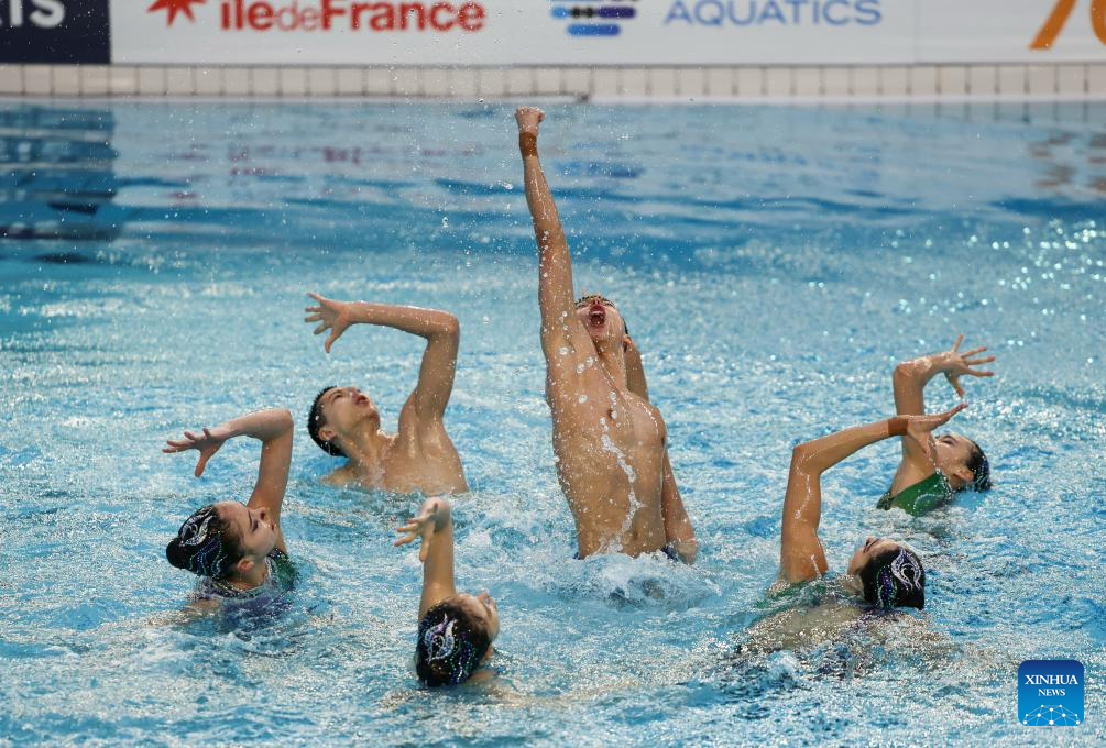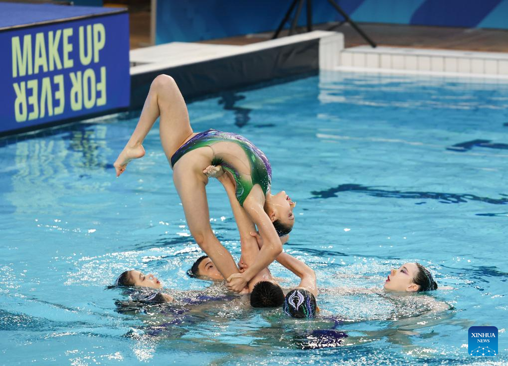 Team China compete during the team acrobatic final at the World Aquatics Artistic Swimming World Cup 2026 - Stop 2 in Paris, France, March 29, 2026. (Xinhua/Wu Huiwo)